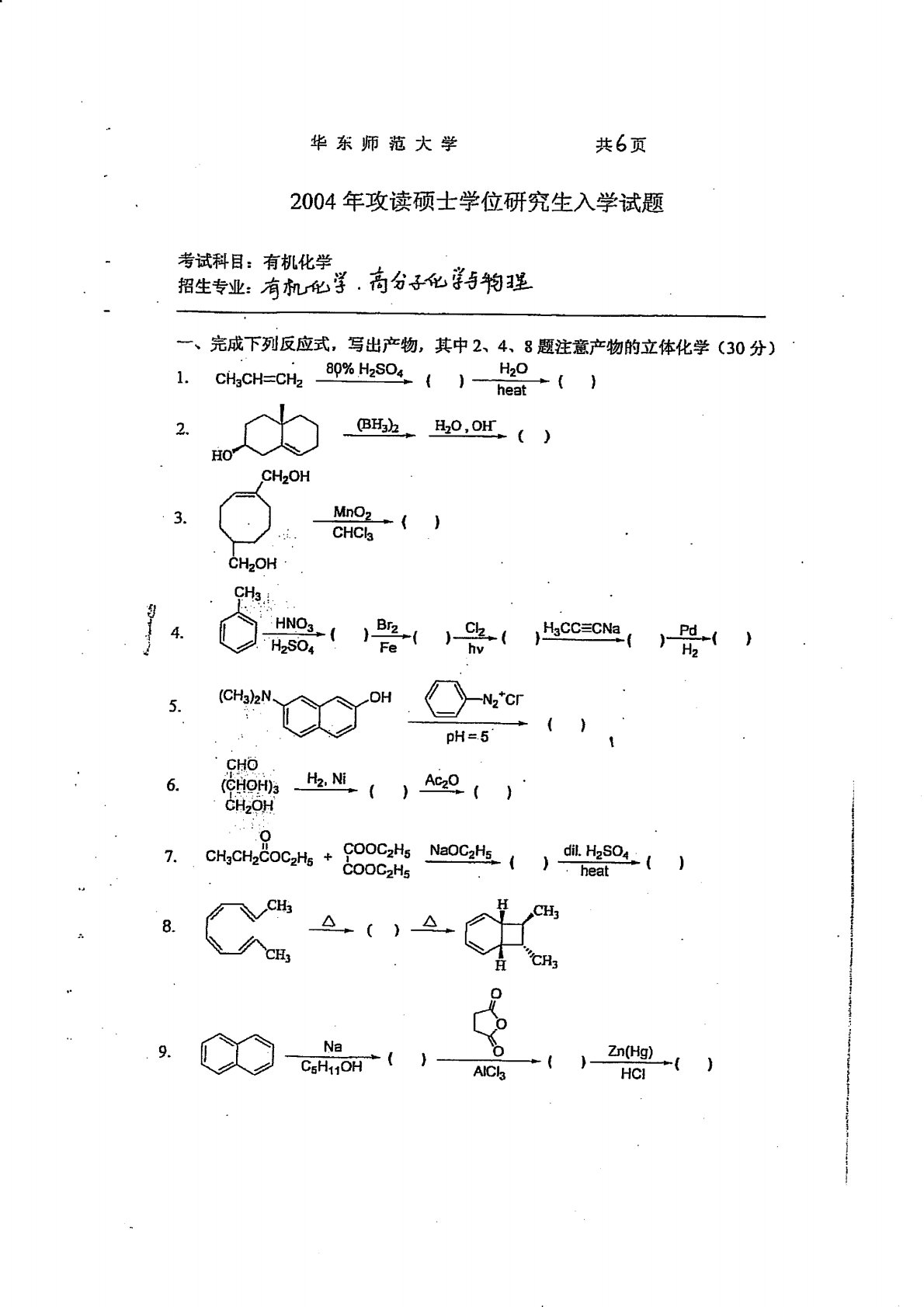 华东师范大学640普通化学原理一2004年真题(有机化学)