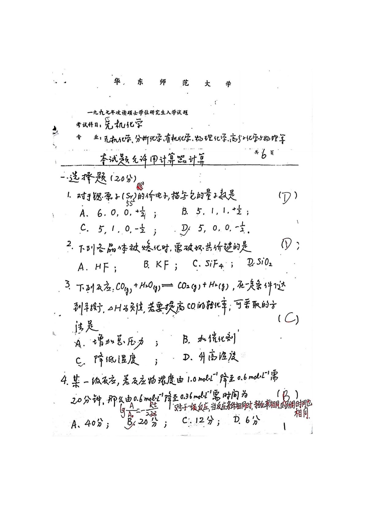 华东师范大学640普通化学原理一1997年真题答案(无机化学)(手写版)