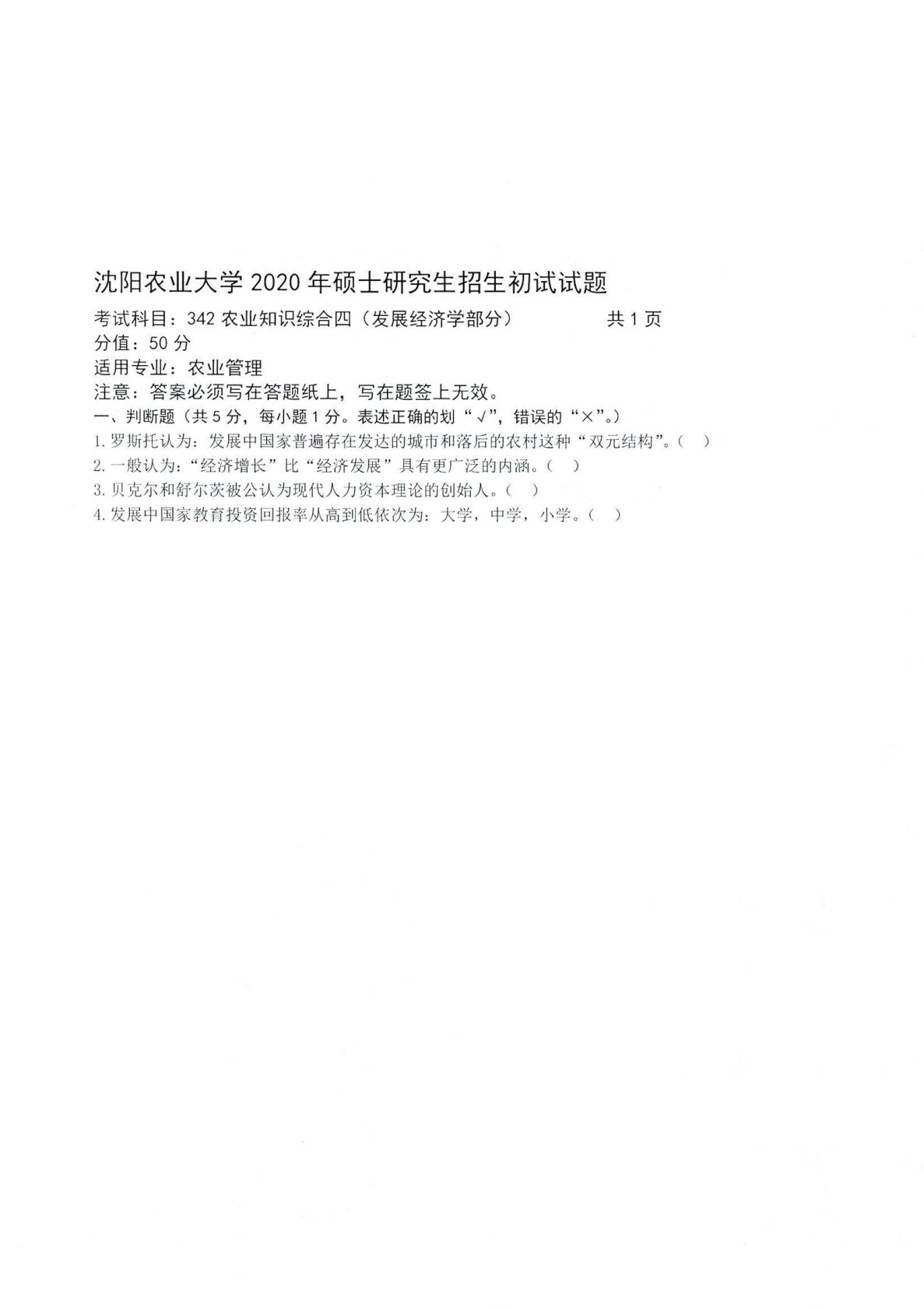 沈阳农业大学342农业知识综合四2020年真题3