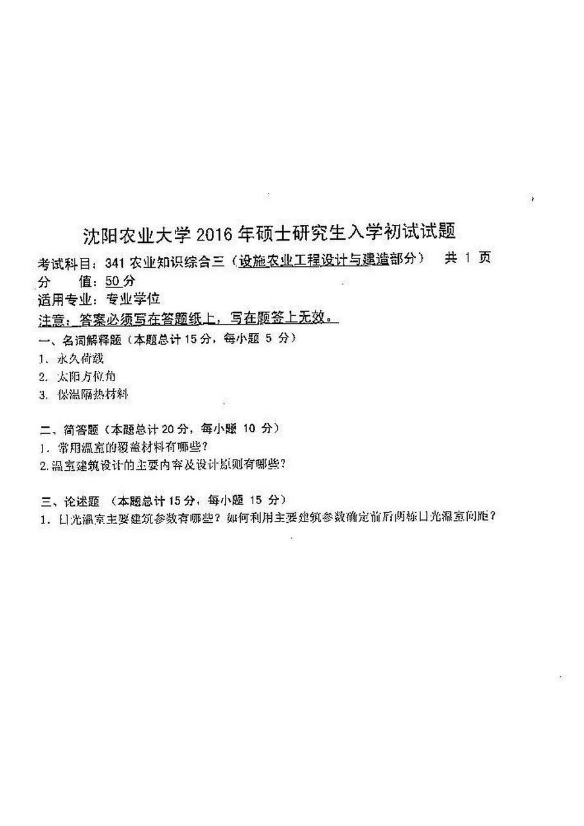 沈阳农业大学341农业知识综合三2016年真题
