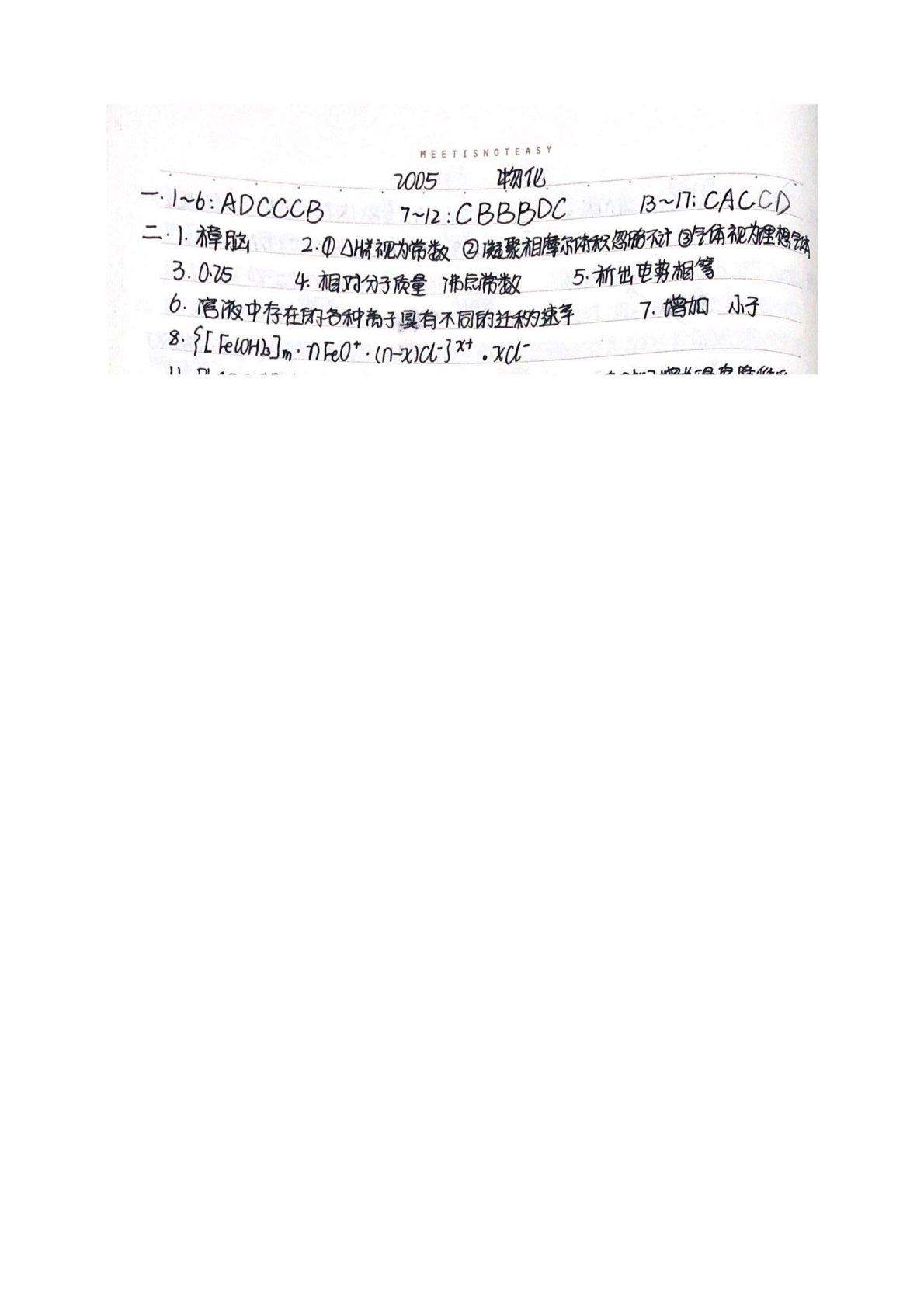 华东师范大学640普通化学原理一2005年真题答案(物理化学)(手写版)