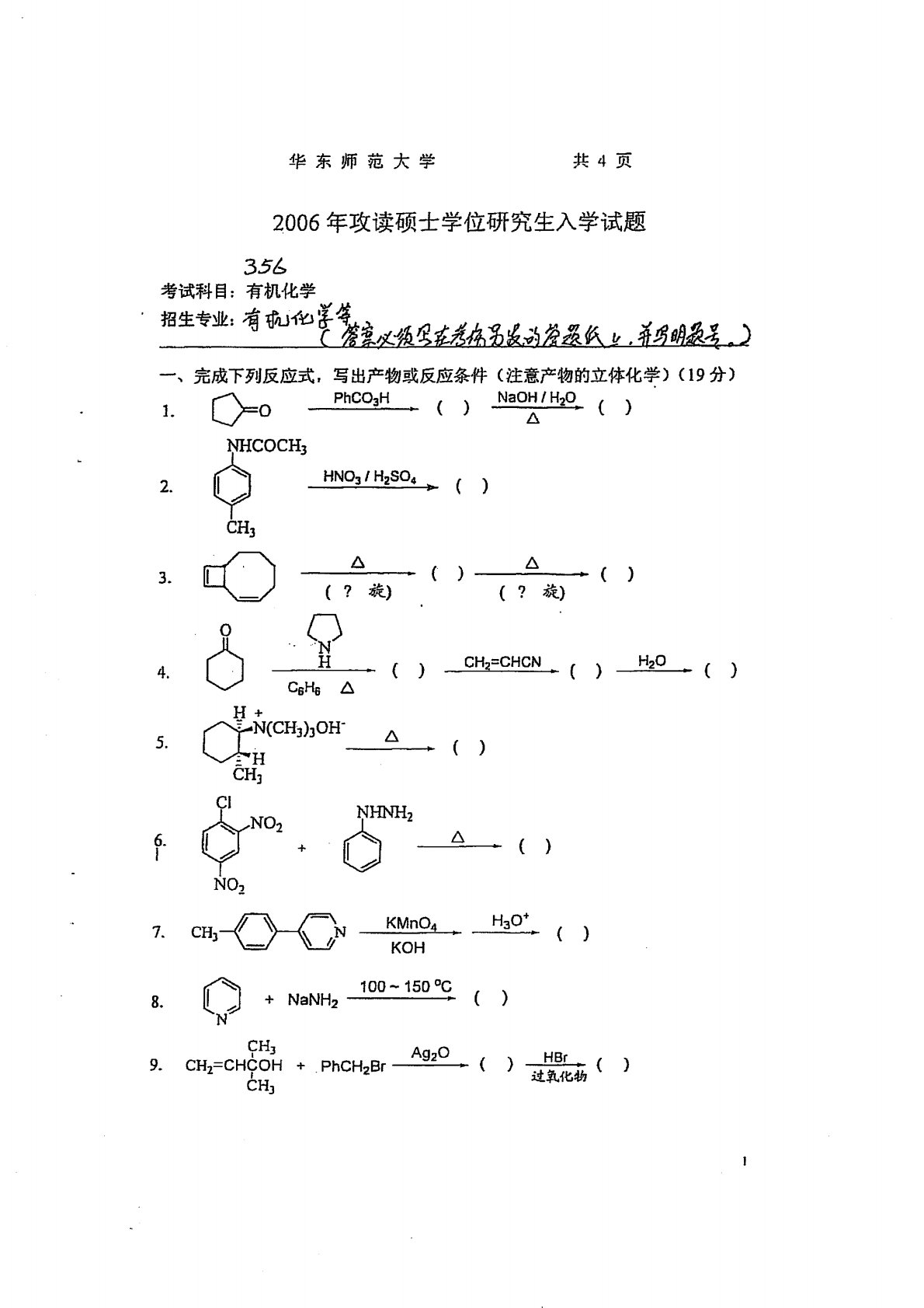 华东师范大学640普通化学原理一2006年真题(有机化学)