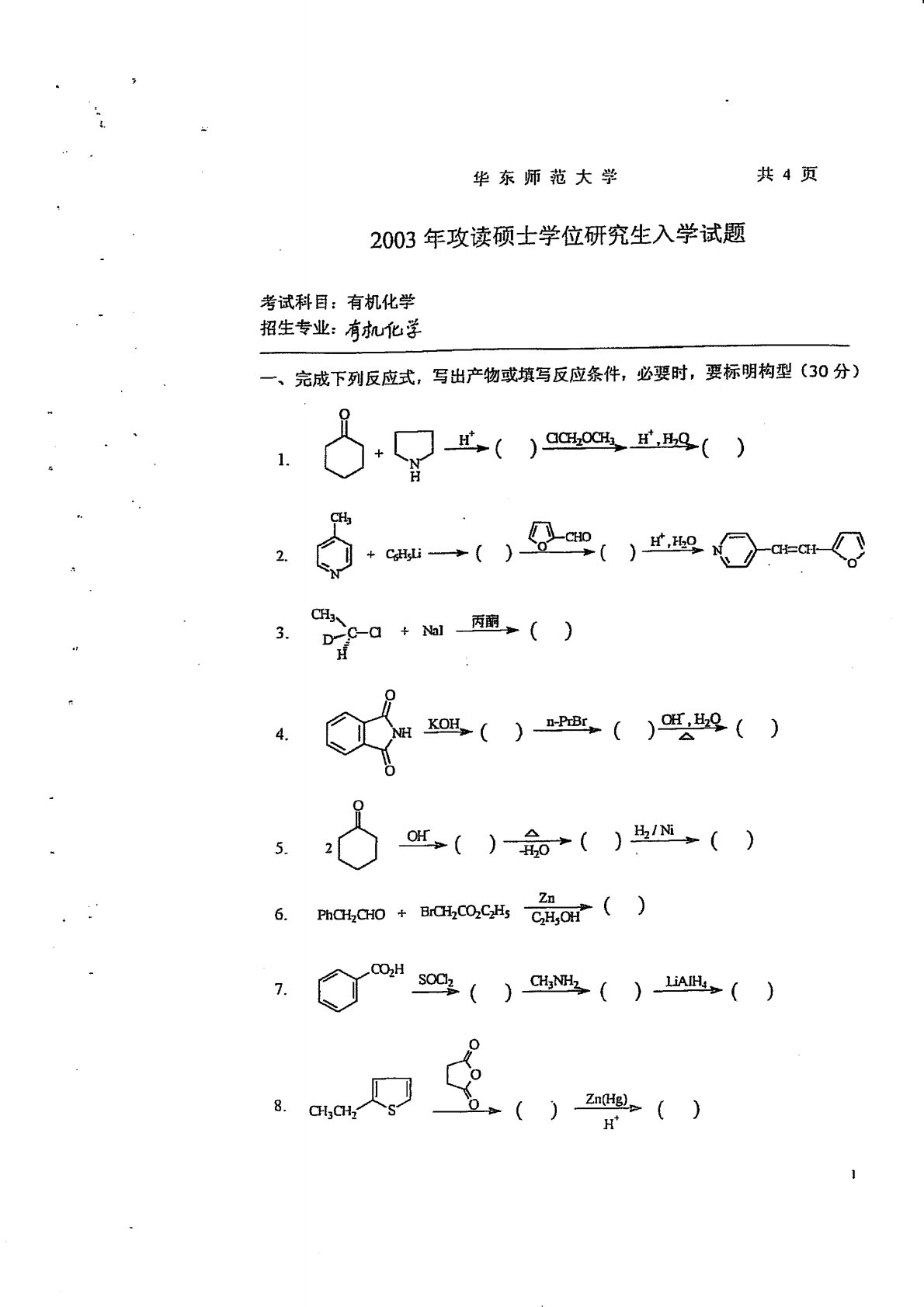 华东师范大学640普通化学原理一2003年真题(有机化学)