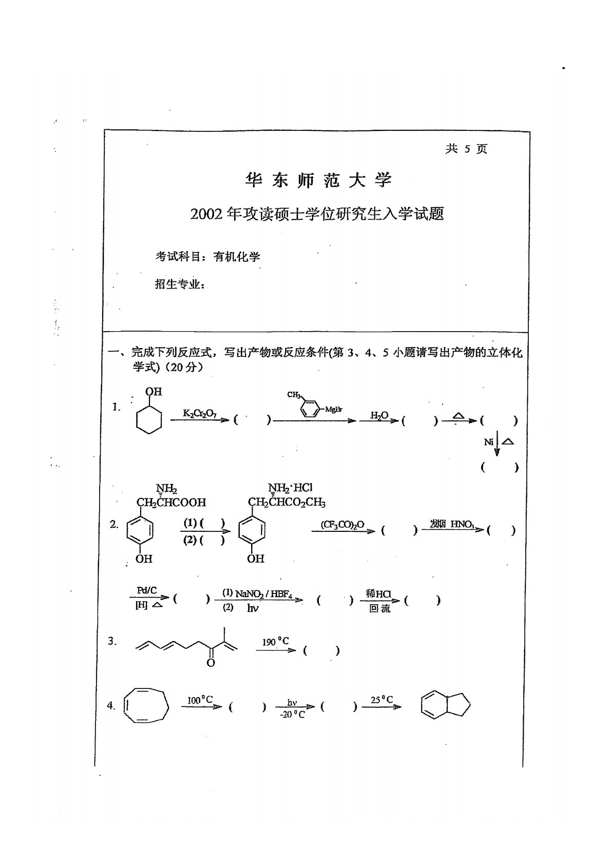 华东师范大学640普通化学原理一2002年真题(有机化学)