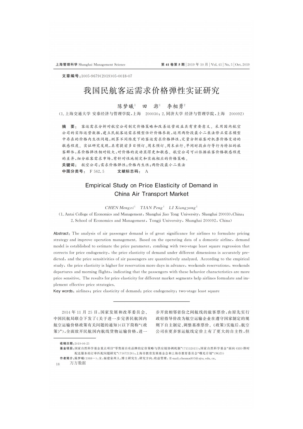 天津工业大学803管理学我国民航客运需求价格弹性实证研究