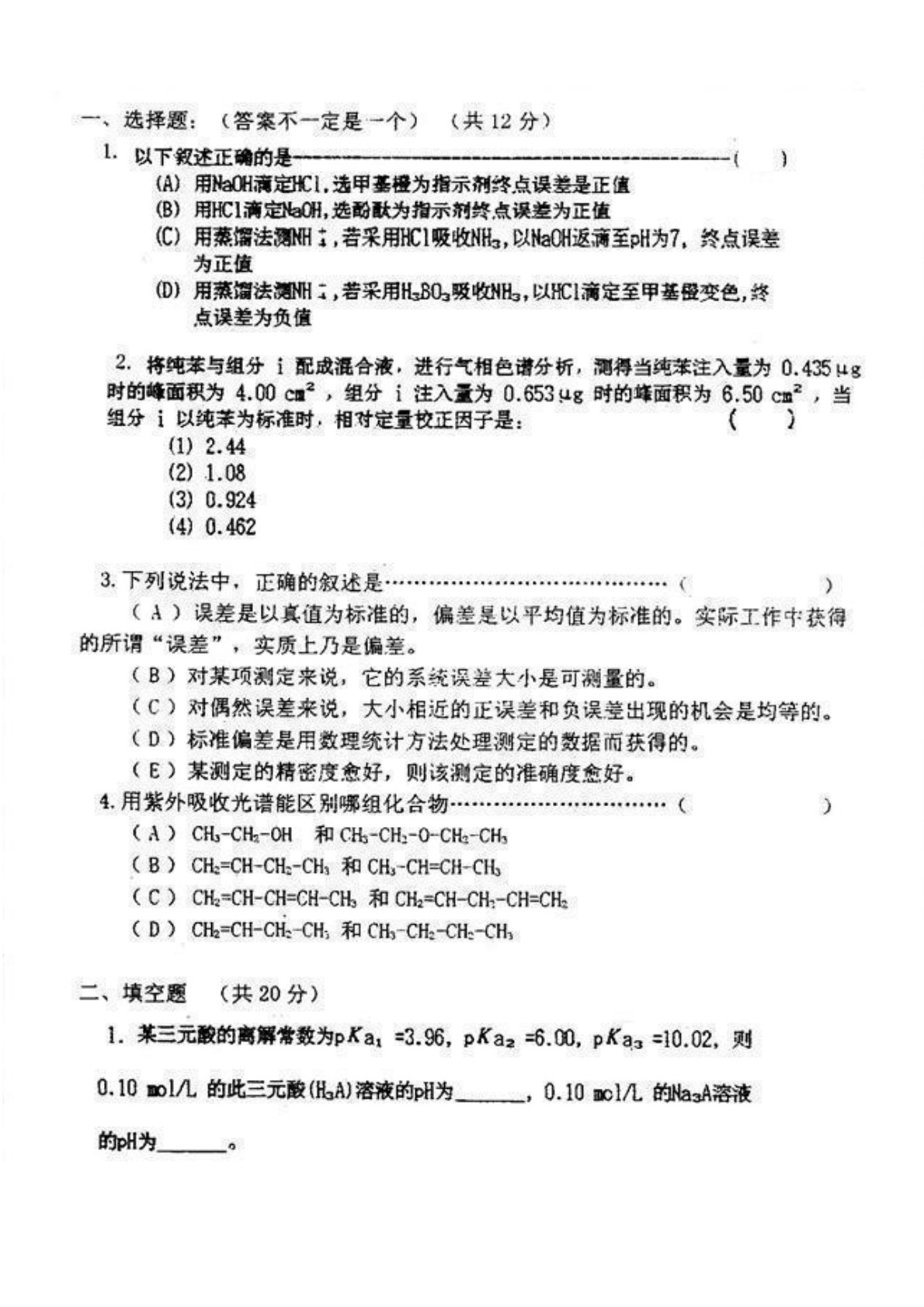 华东理工大学602分析化学1998年真题