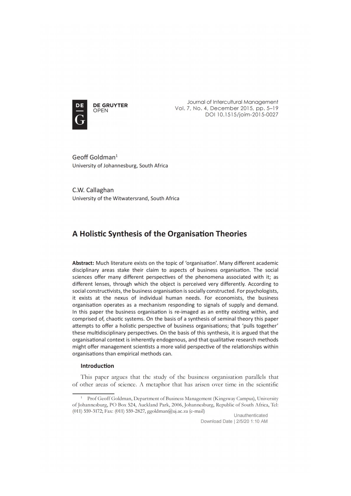 天津工业大学803管理学[Journal of Intercultural Management] A Holistic Synthesis of the Organisation Theories