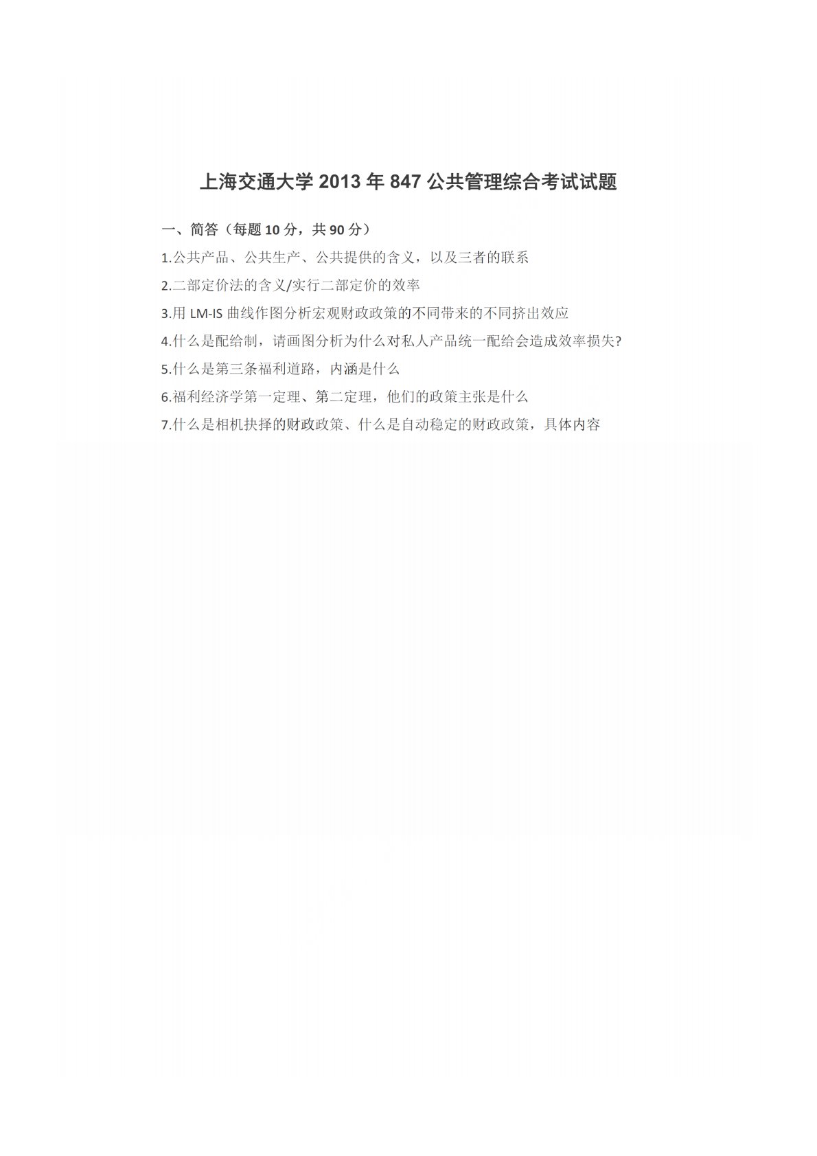 上海交通大学847公共管理综合2013年真题