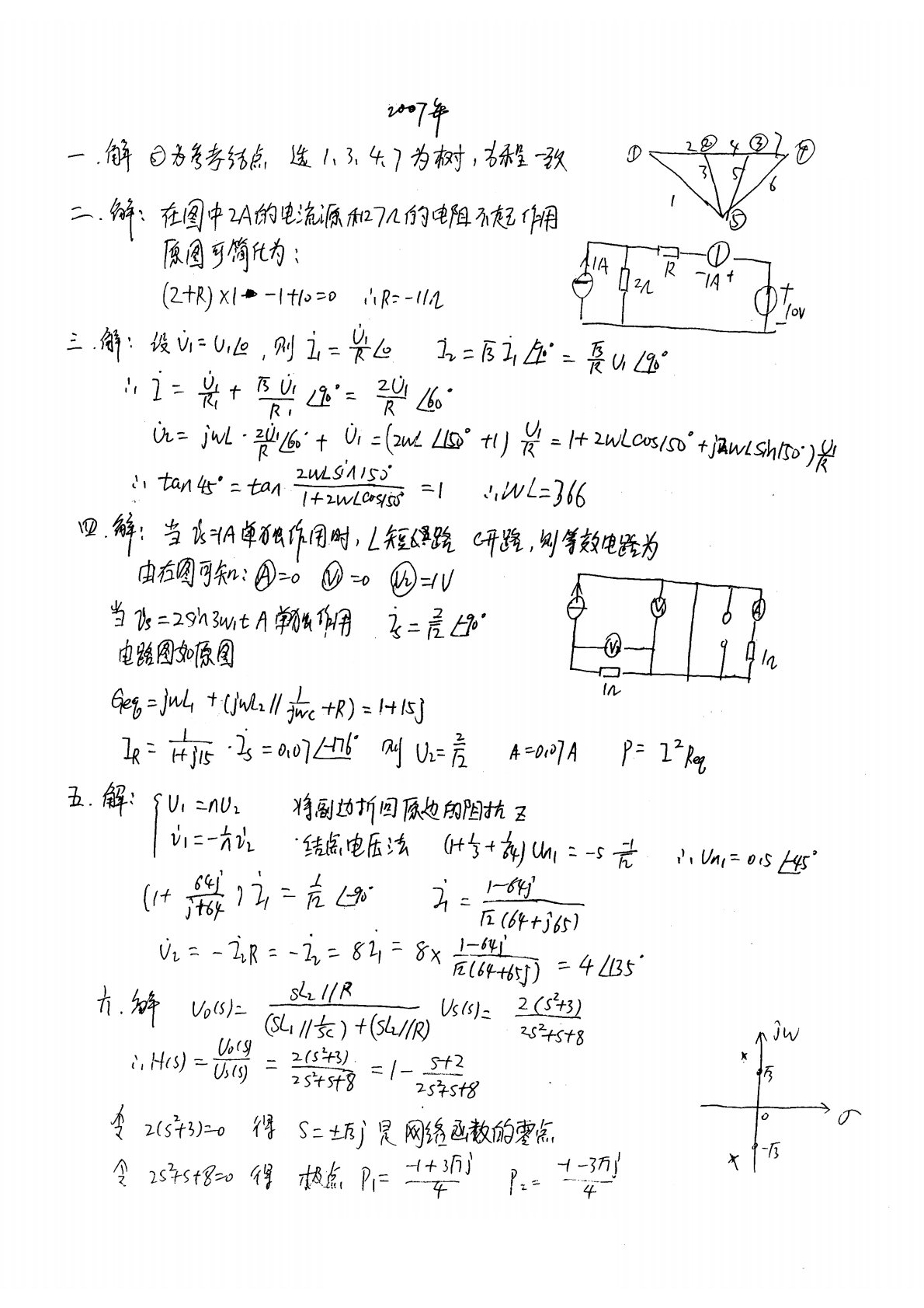 太原理工大学2007年827电路考研真题答案解析