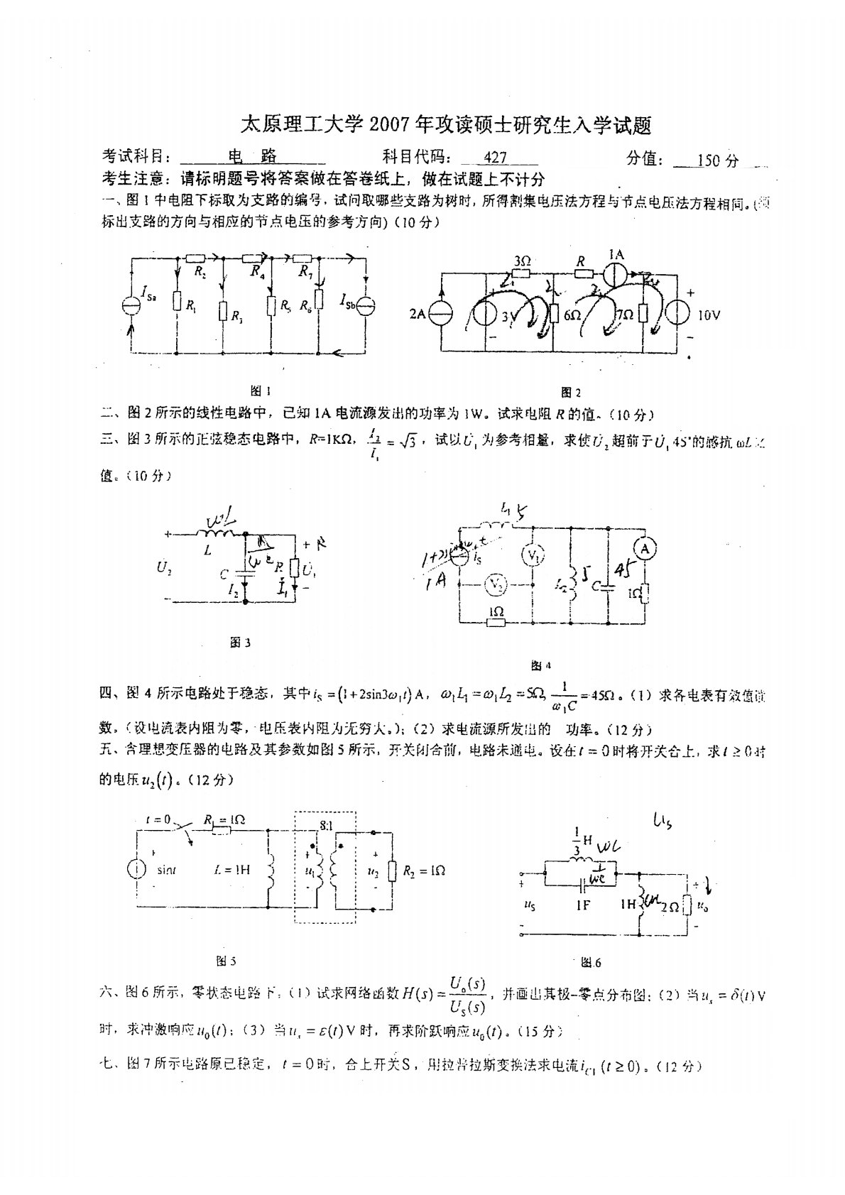 太原理工大学2007年827电路考研真题