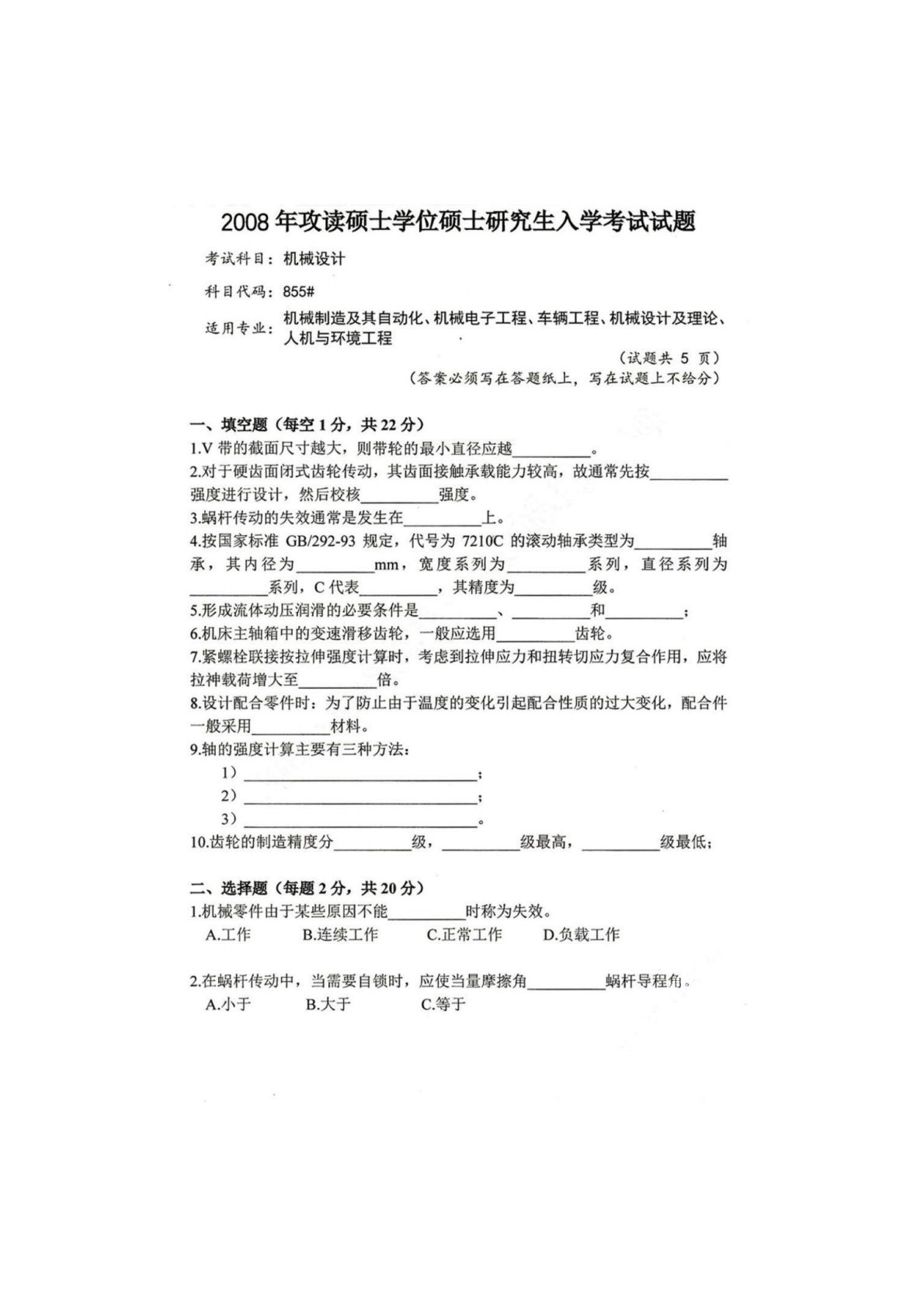 四川大学855机械设计2008年真题