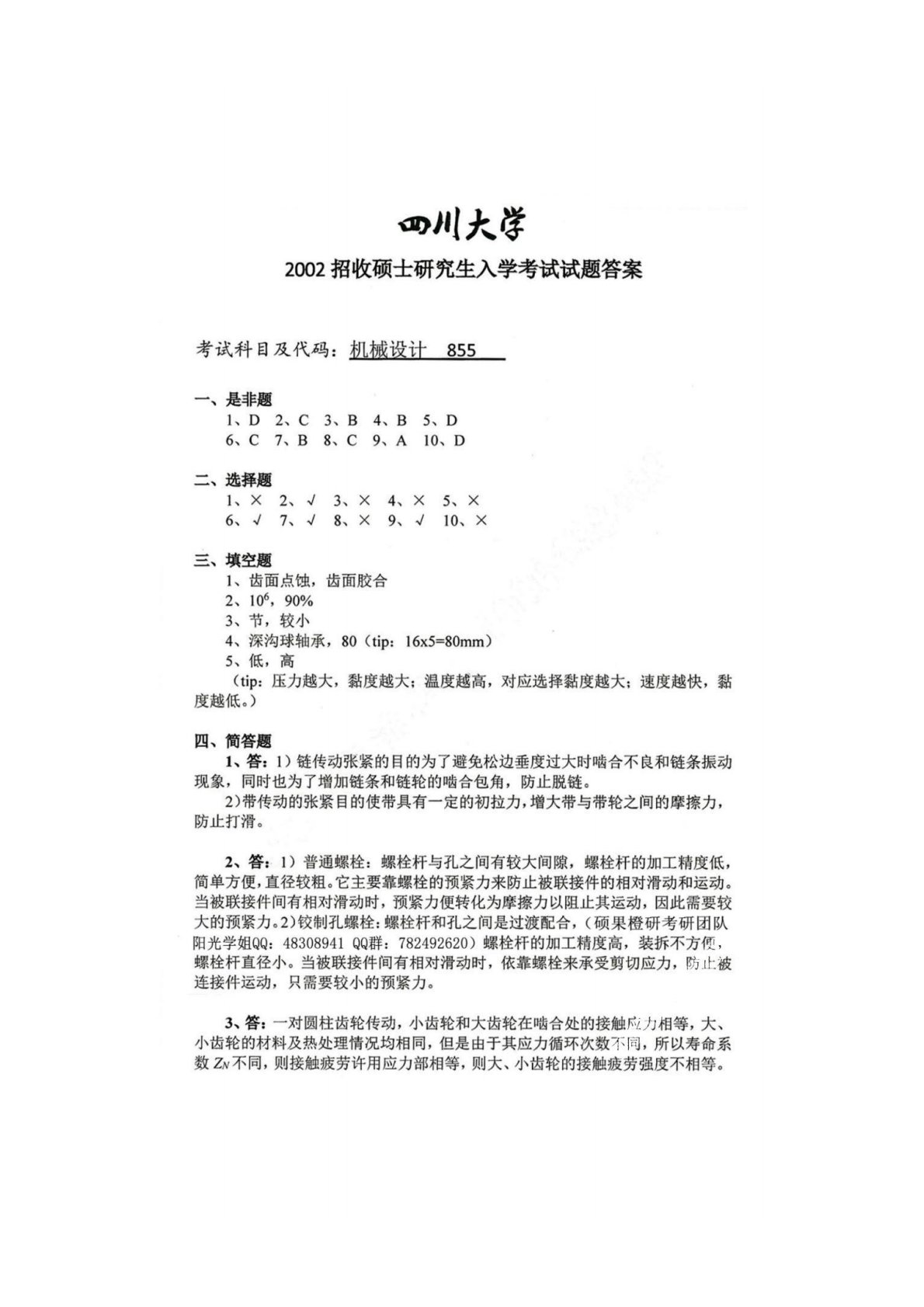 四川大学855机械设计2002年真题答案