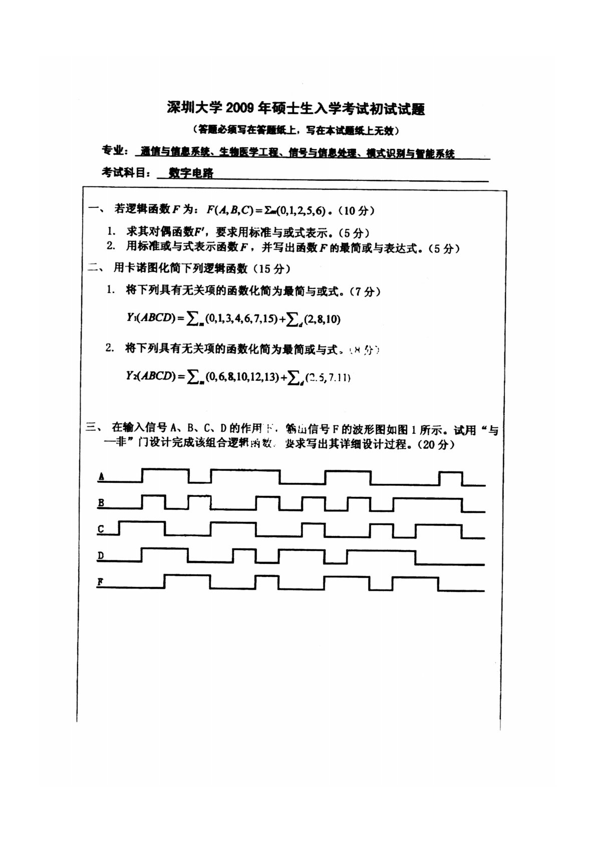 清华大学827电路原理2009年真题