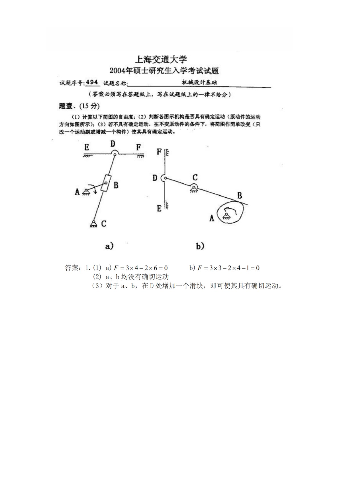 上海交通大学2004年809机械设计考研真题及答案解析