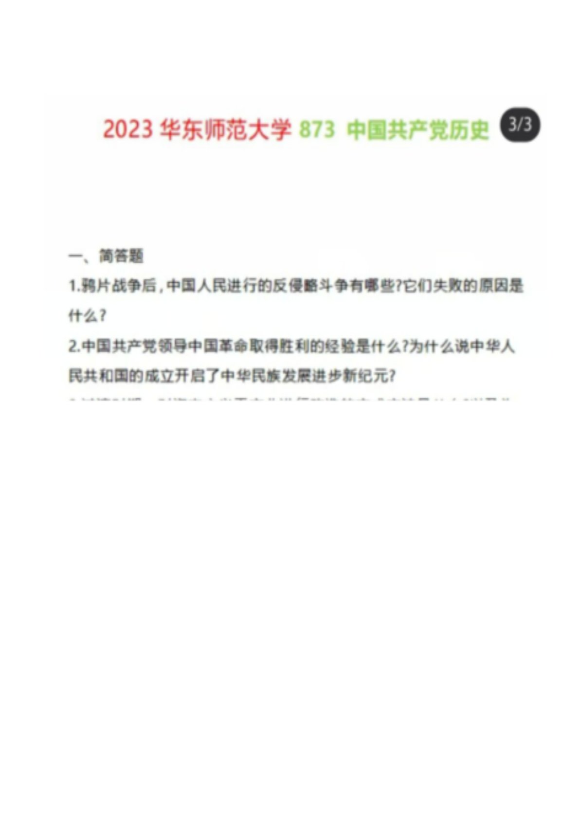 华东师范大学873中国共产党历史2023年真题