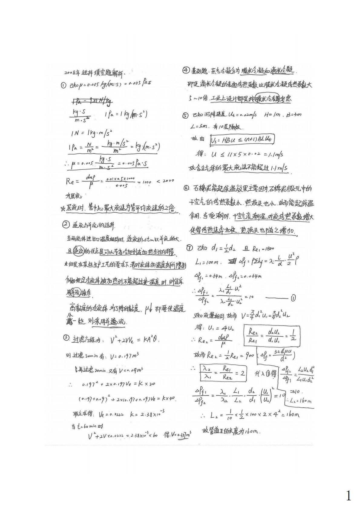 上海大学852化工原理2008年真题答案手写版