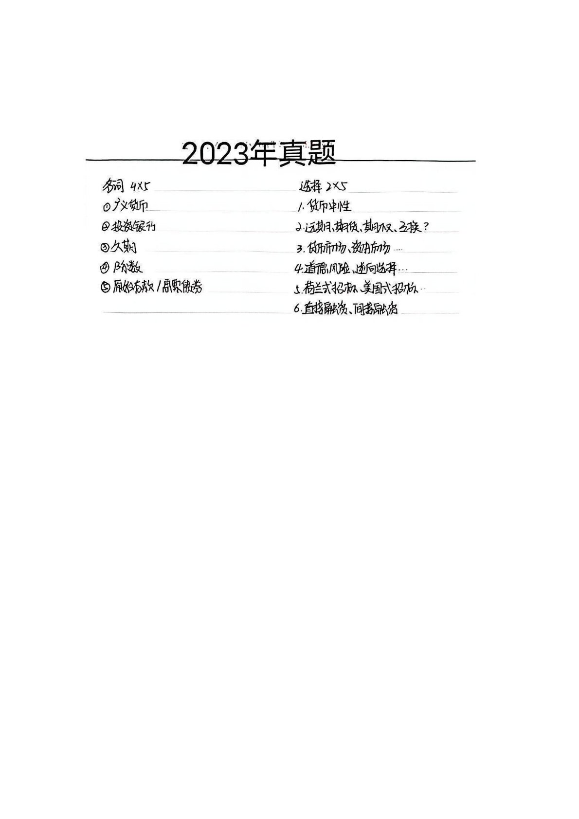 华北电力大学(北京)431金融学综合2023年真题手写版