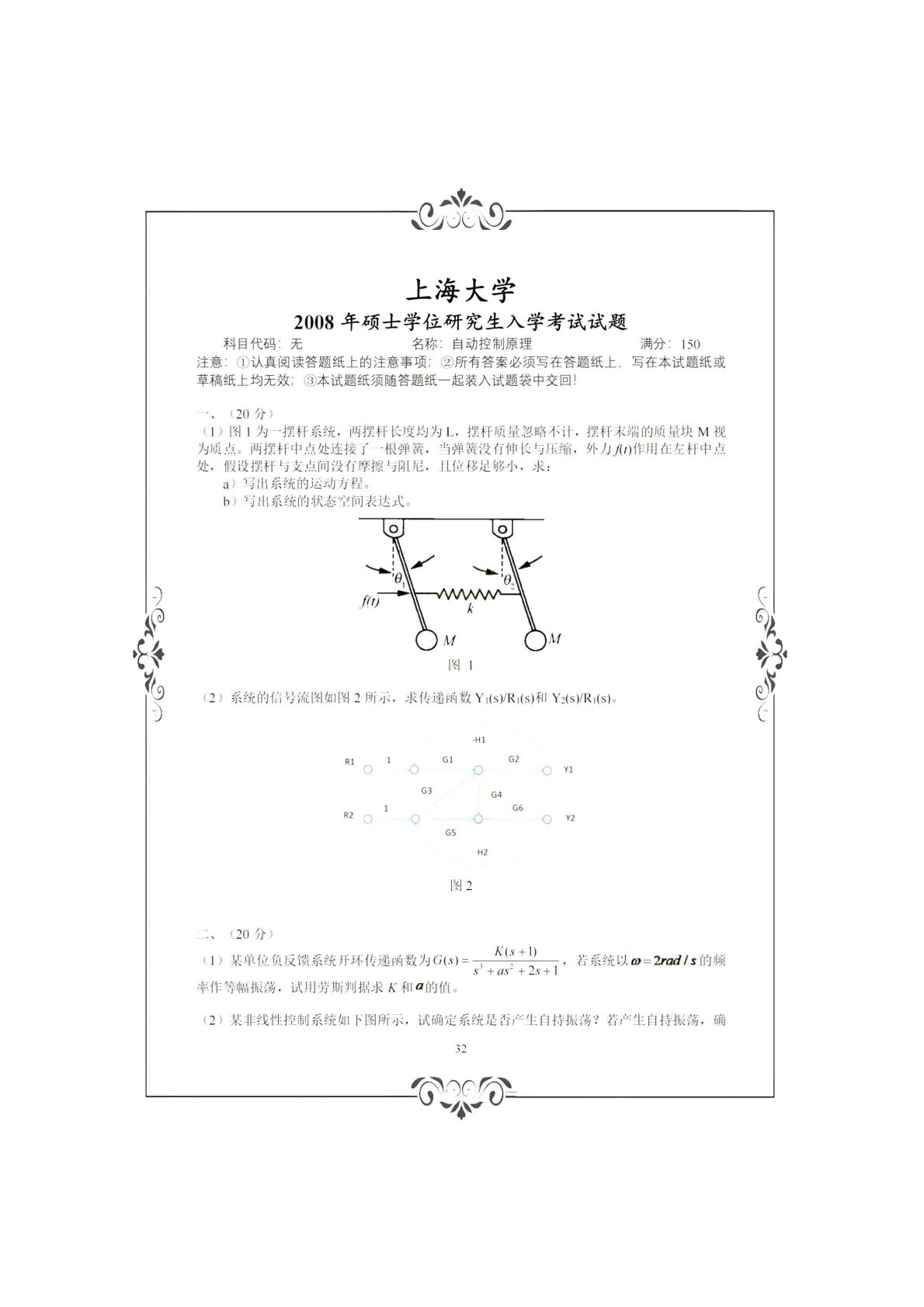 上海大学836自动控制理论(含经典和现代)(学硕)2008年真题