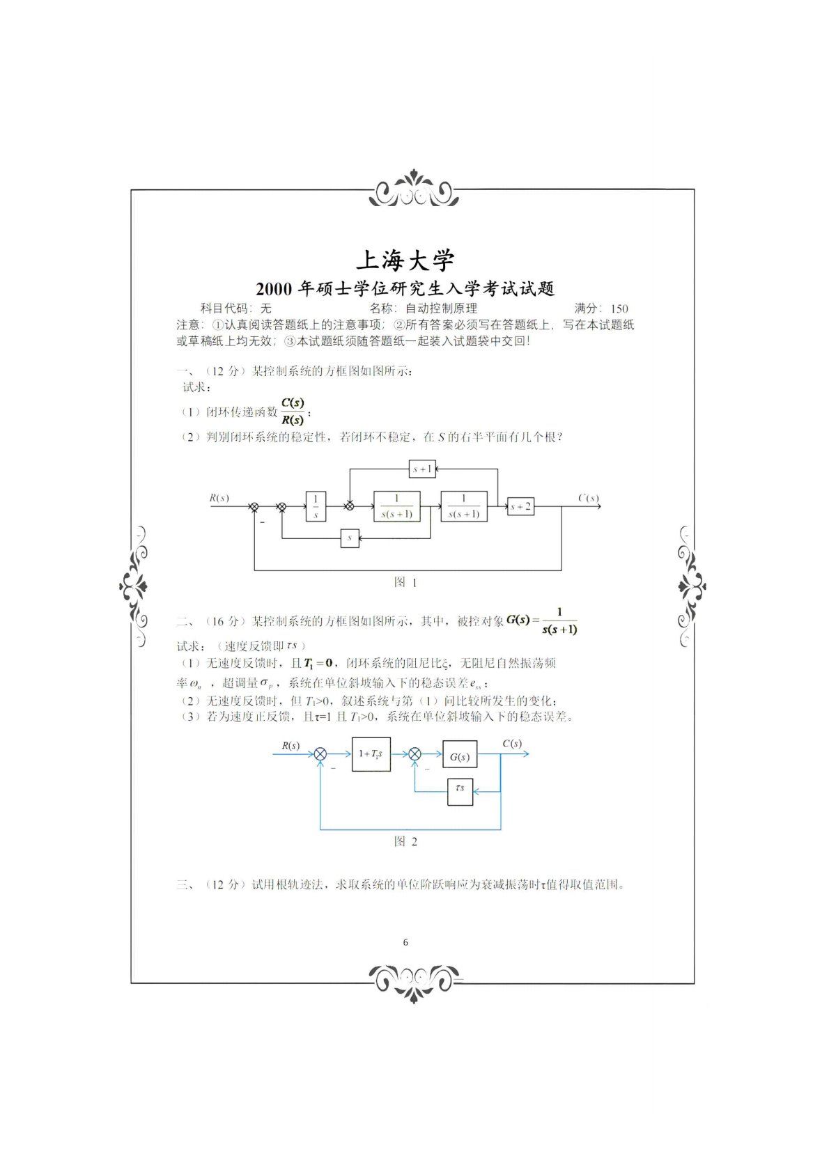 上海大学836自动控制理论(含经典和现代)(学硕)2000年真题