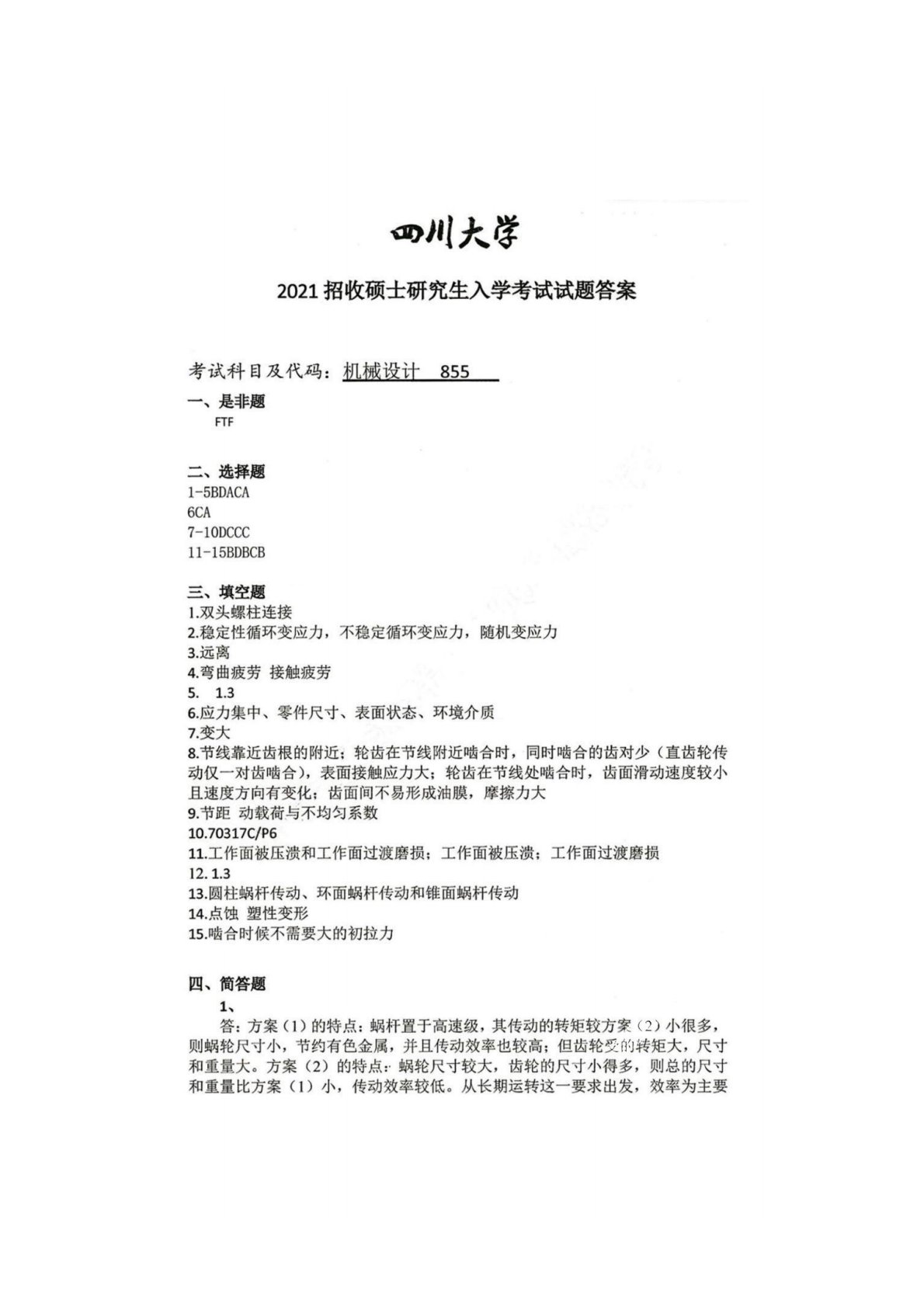 四川大学855机械设计2021年真题答案