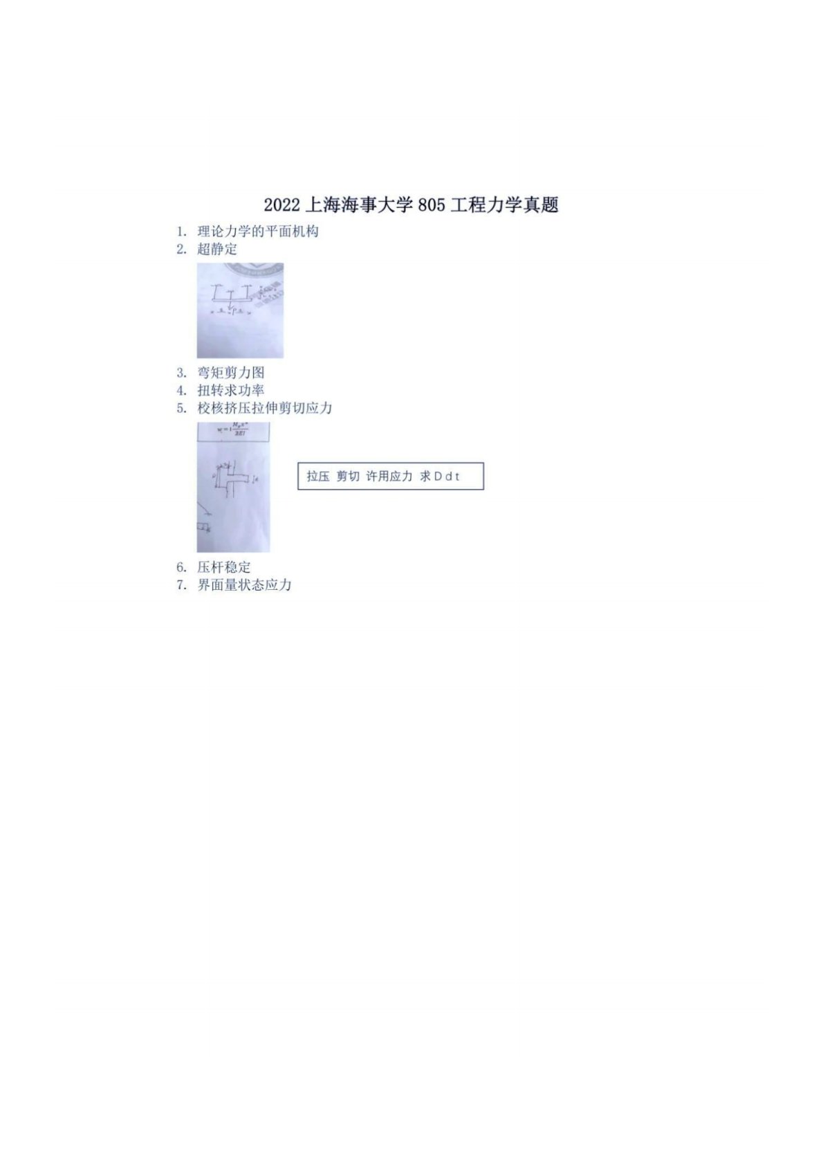 上海海事大学805工程力学2022年真题