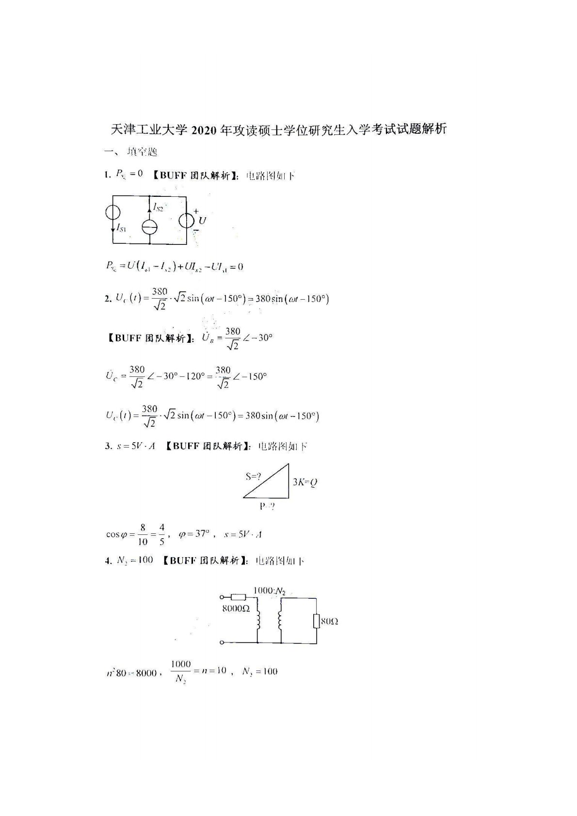 天津工业大学849电路理论2020年真题答案