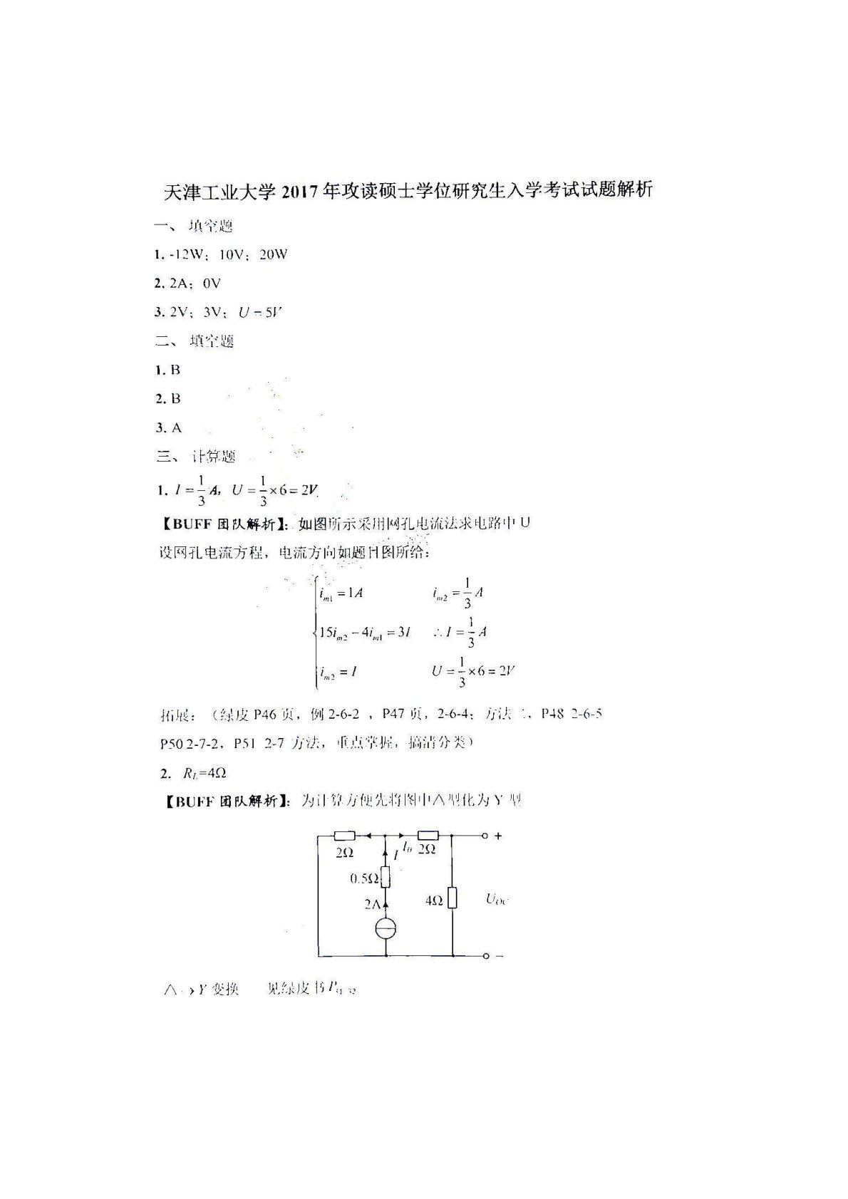 天津工业大学849电路理论2017年真题答案