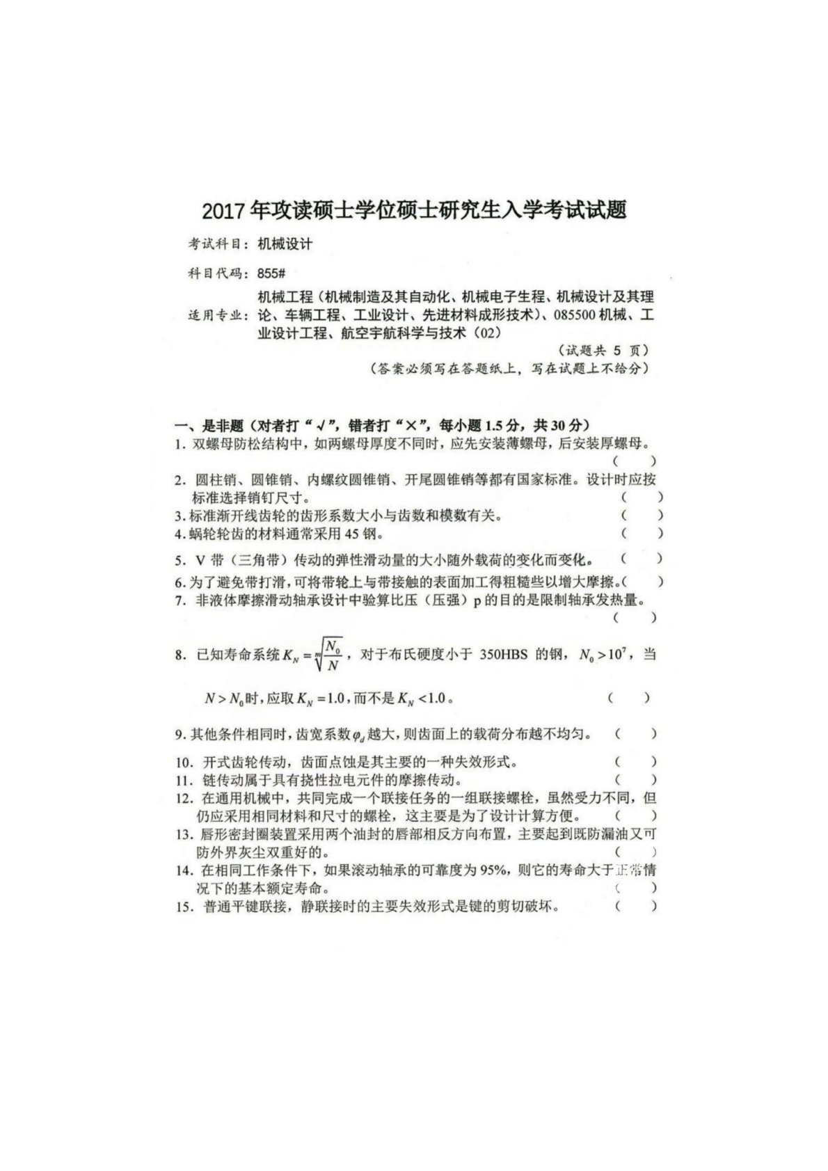四川大学855机械设计2017年真题