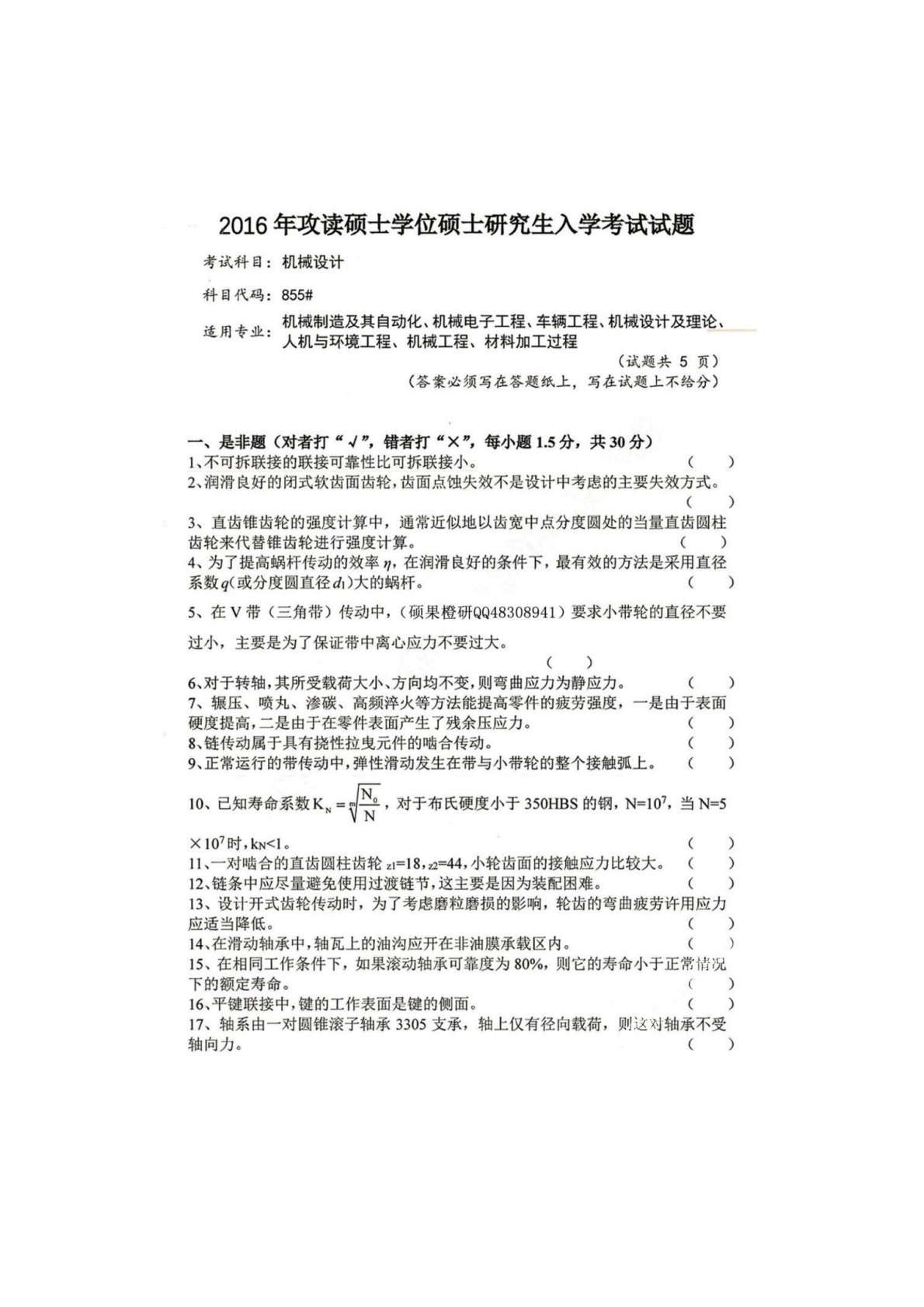 四川大学855机械设计2016年真题