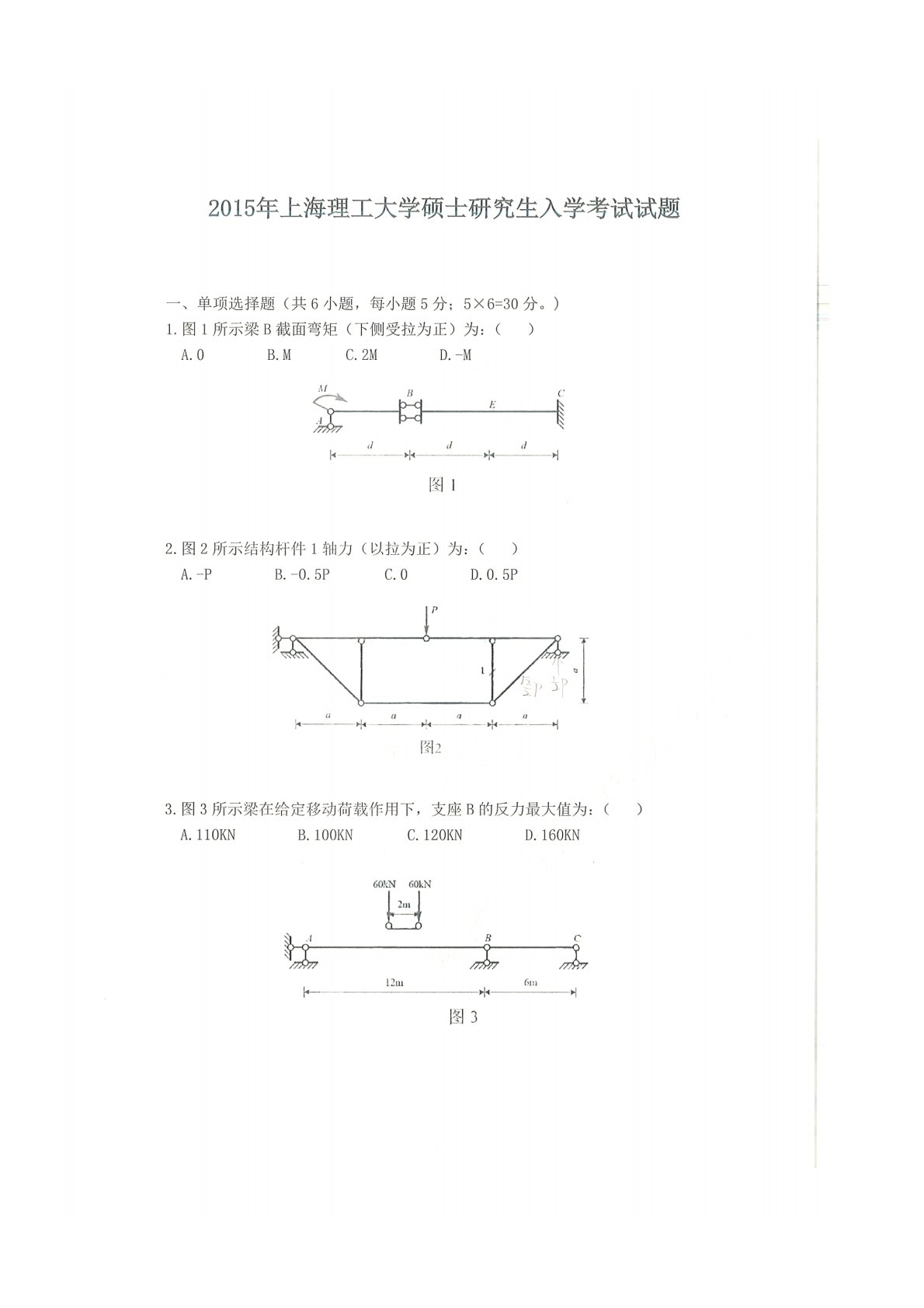 上海理工大学822结构力学2015年真题