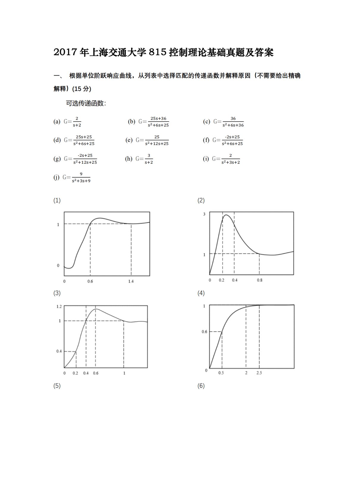 上海交通大学2017年815控制理论基础考研真题及答案解析