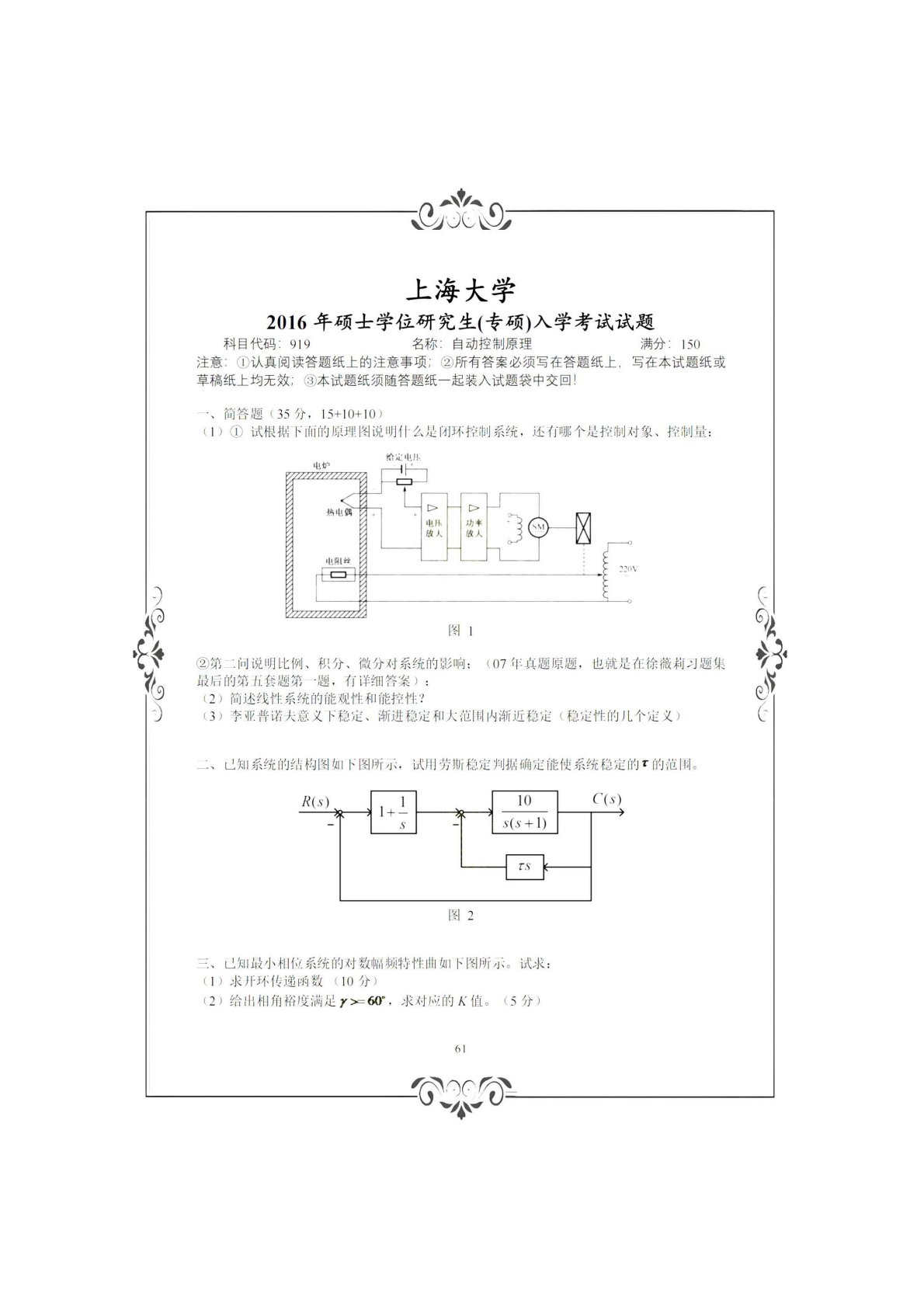 上海大学915自动控制理论(含经典和现代)(专硕)2016年真题