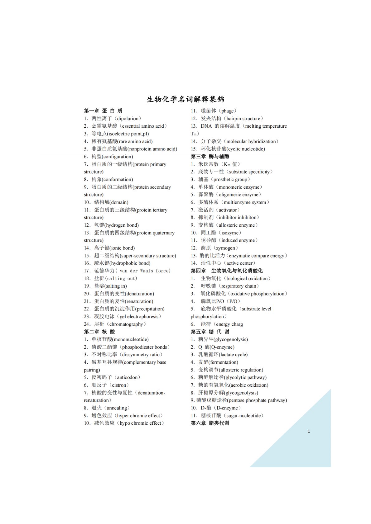 上海大学858生物化学(理工)名词解释集锦
