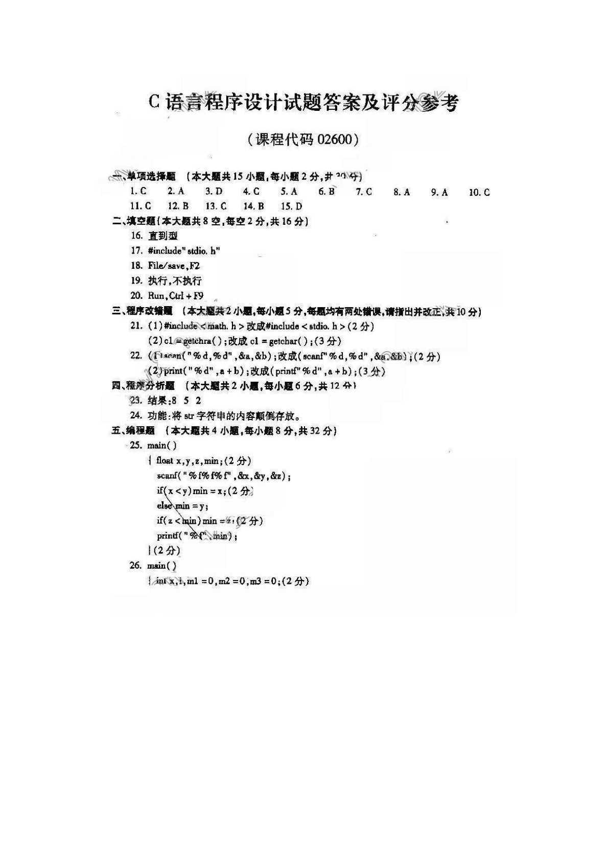 太原师范学院811数据结构与算法(C语言)2012年试题答案