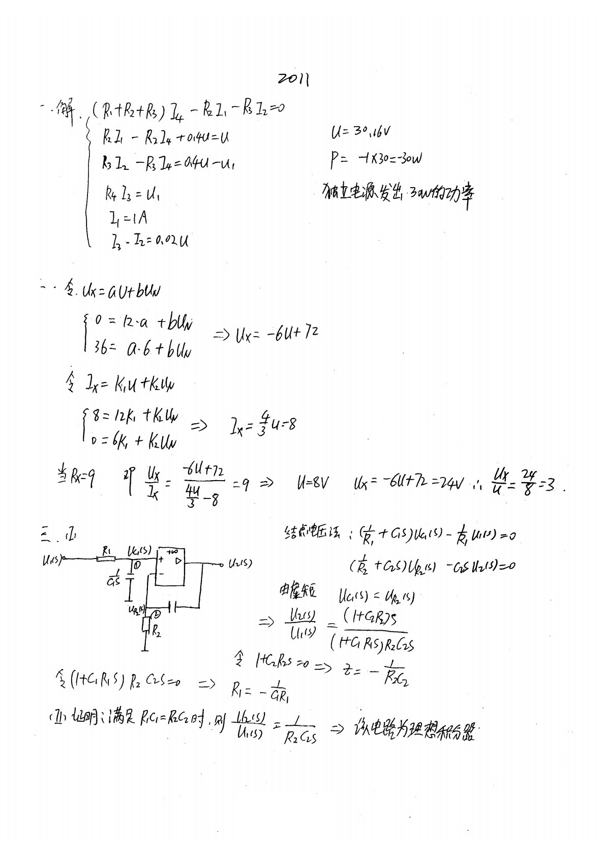 清华大学827电路原理2009年真题答案