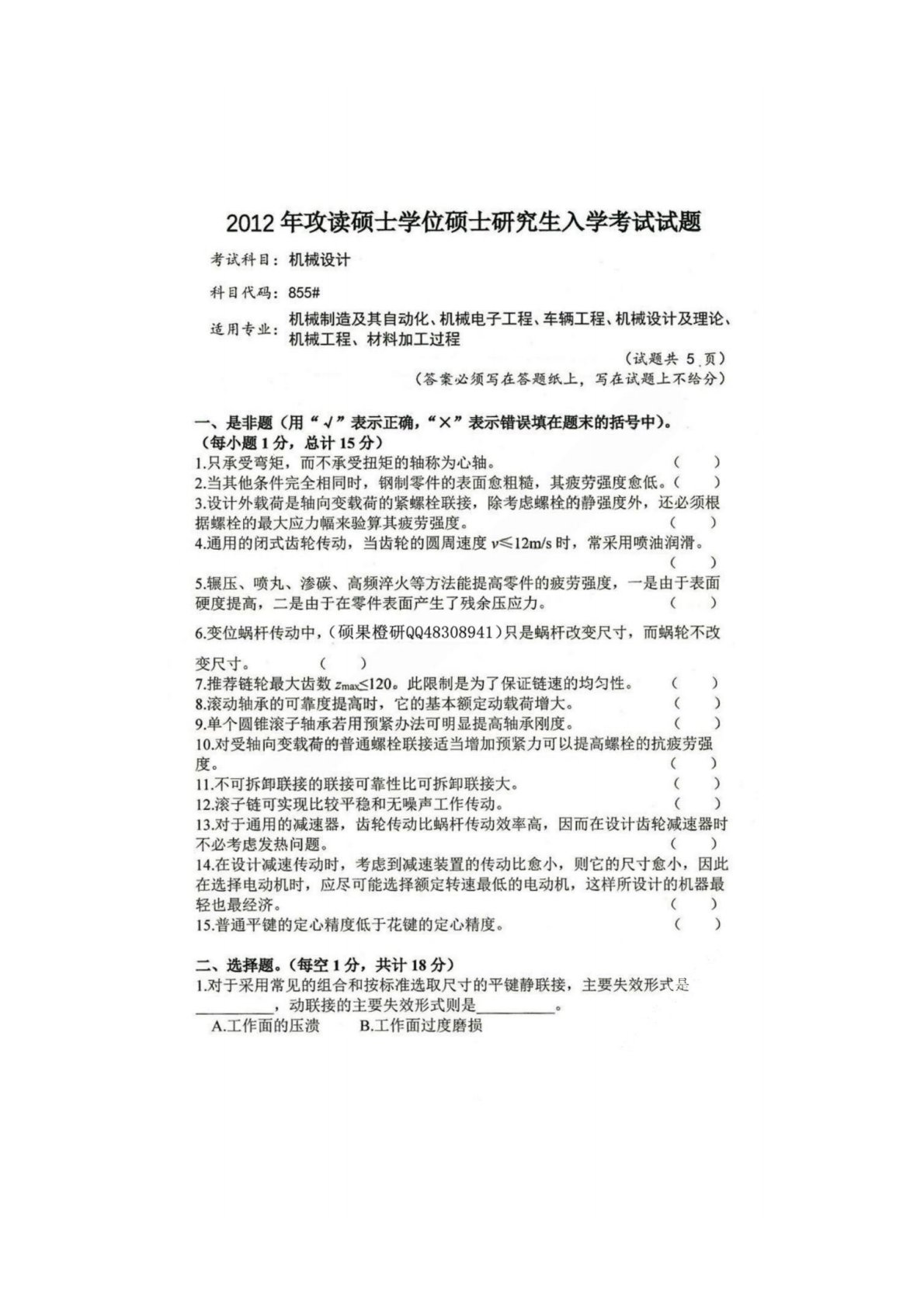 四川大学855机械设计2012年真题