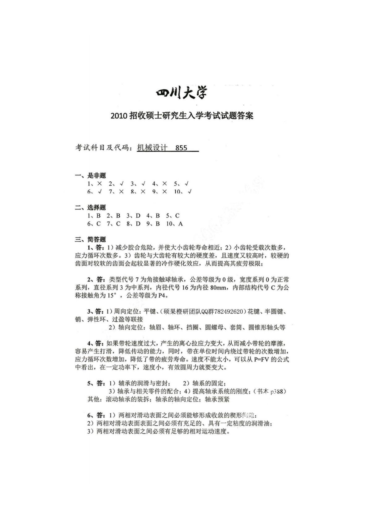 四川大学855机械设计2010年真题答案