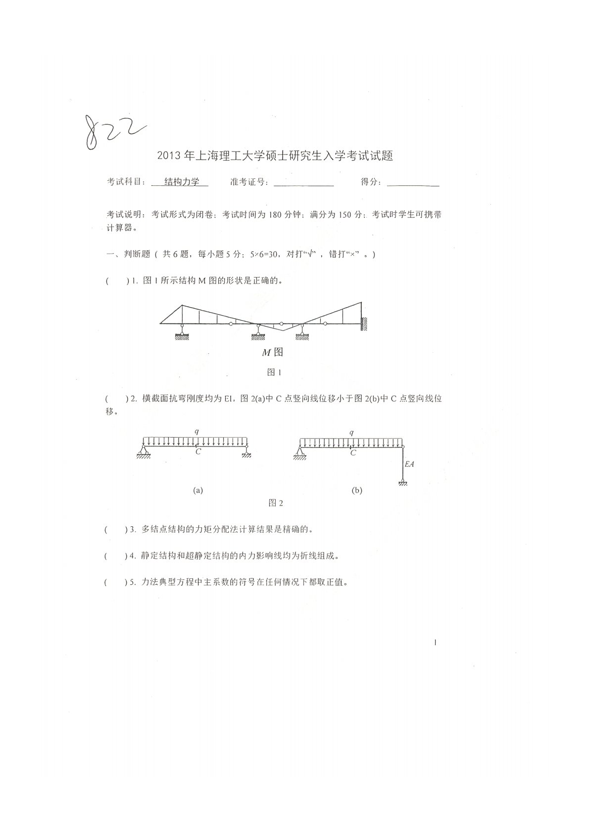 上海理工大学822结构力学2013年真题