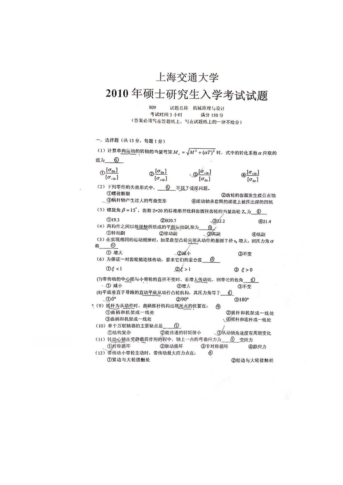 上海交通大学2010年809机械设计考研真题及答案解析