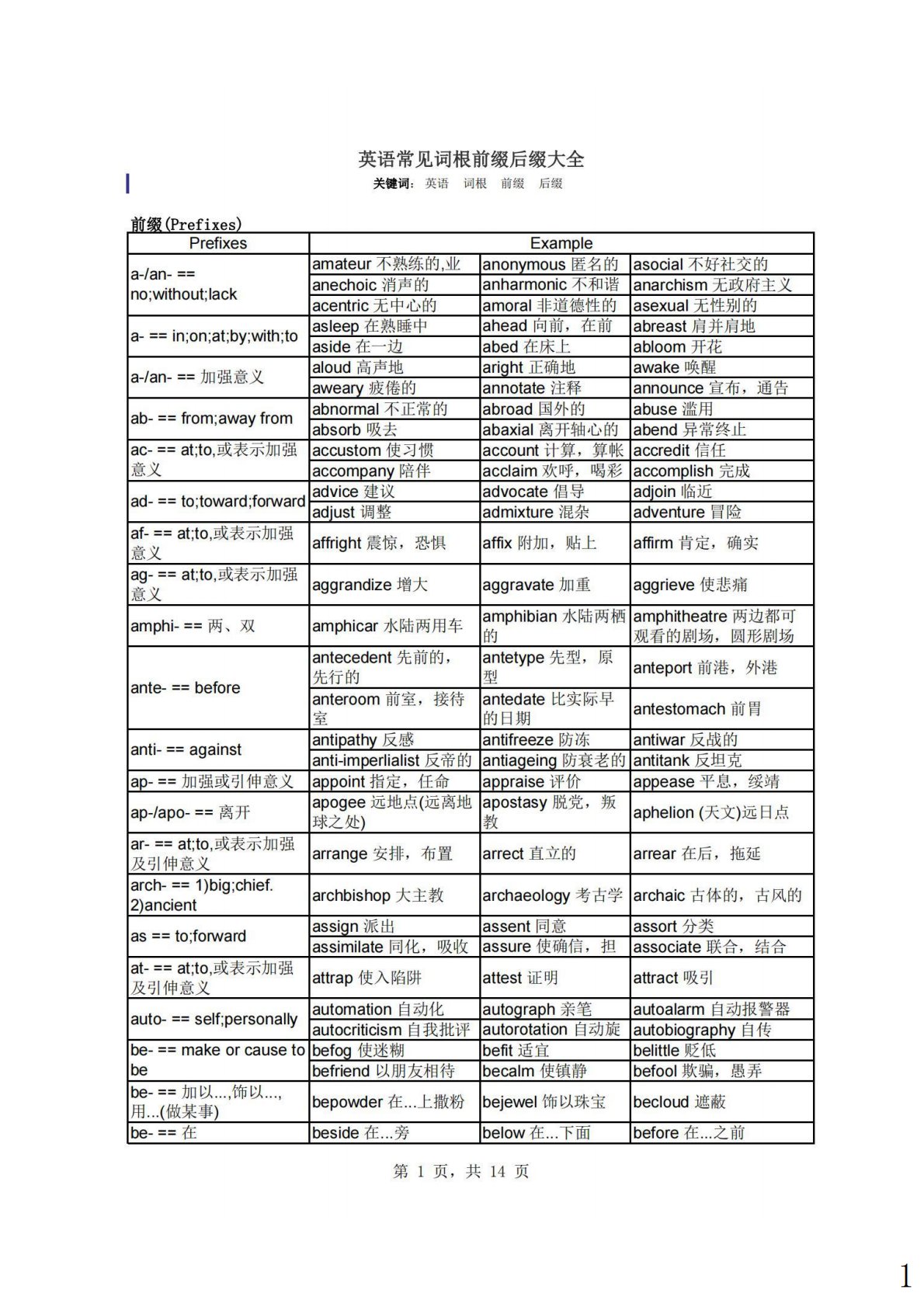 上海大学852化工原理常见词根前缀后缀大全