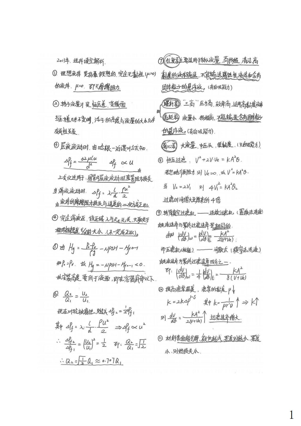 上海大学852化工原理2013年真题答案手写版