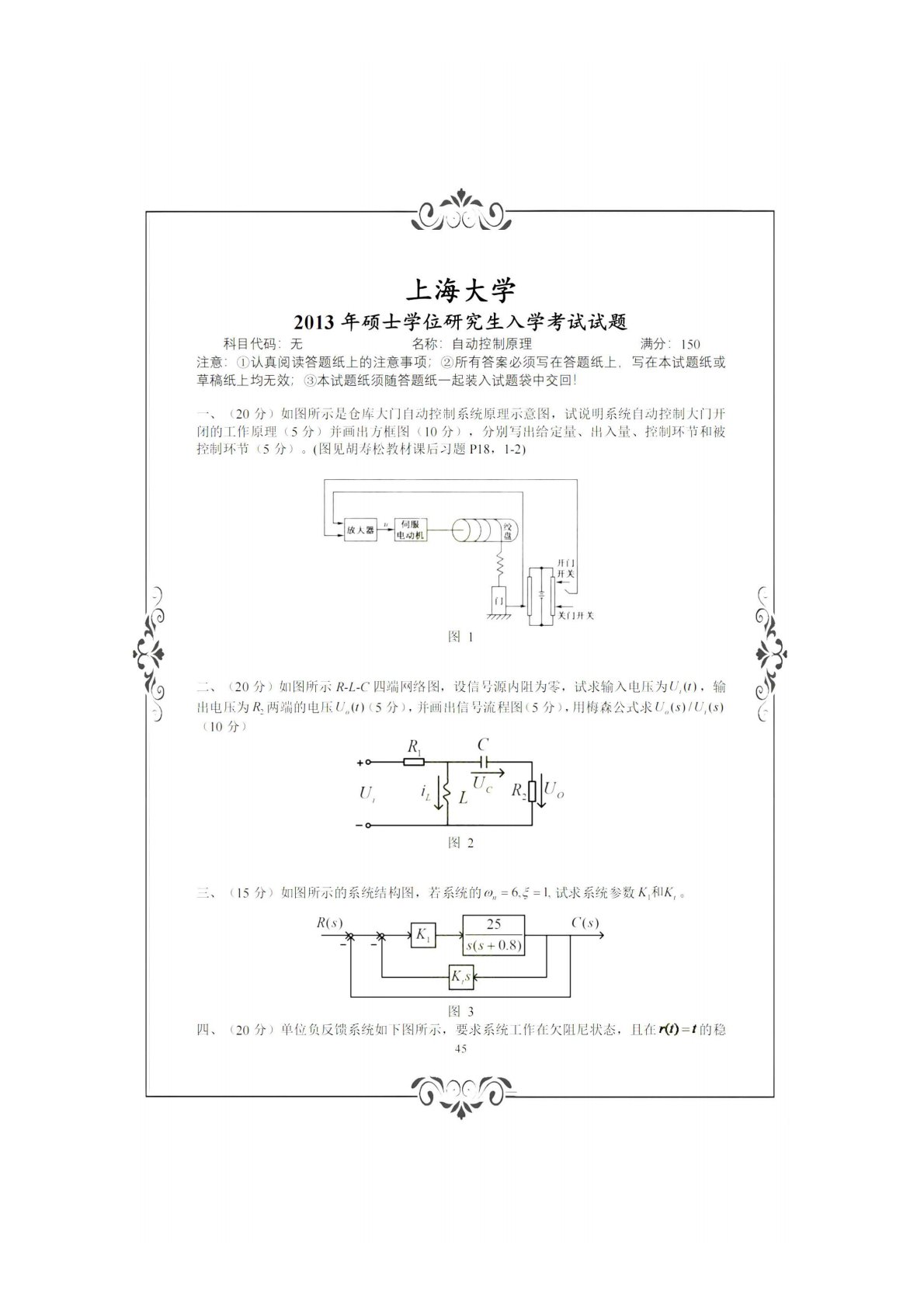 上海大学836自动控制理论(含经典和现代)(学硕)2013年真题