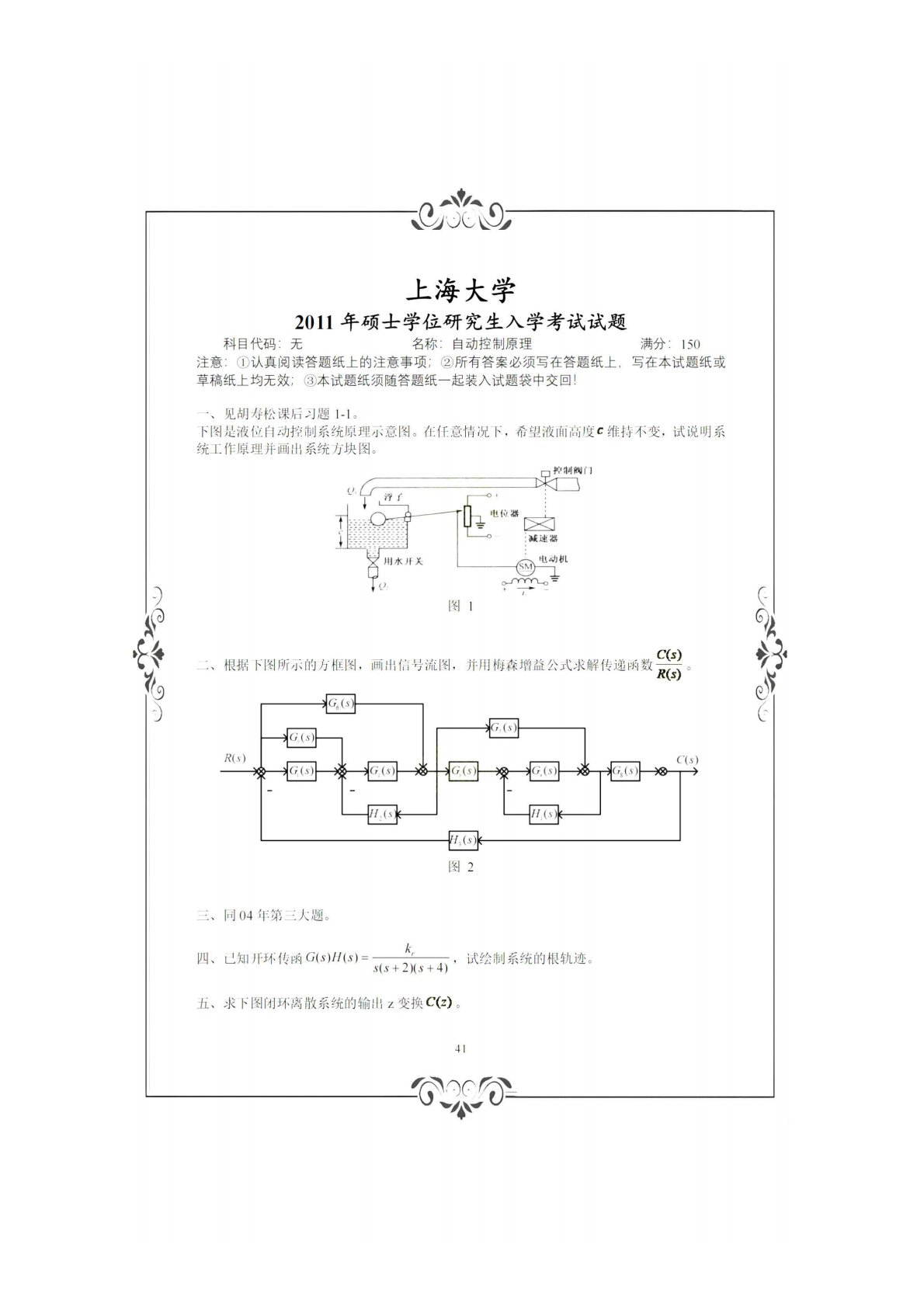 上海大学836自动控制理论(含经典和现代)(学硕)2011年真题