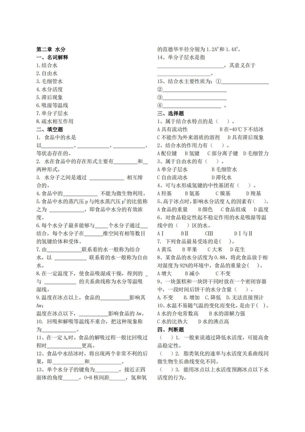 山西大学850食品化学习题集1及答案