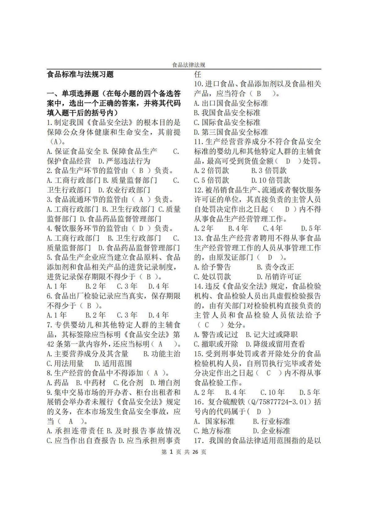 山西大学341农业知识综合三食品标准与法规