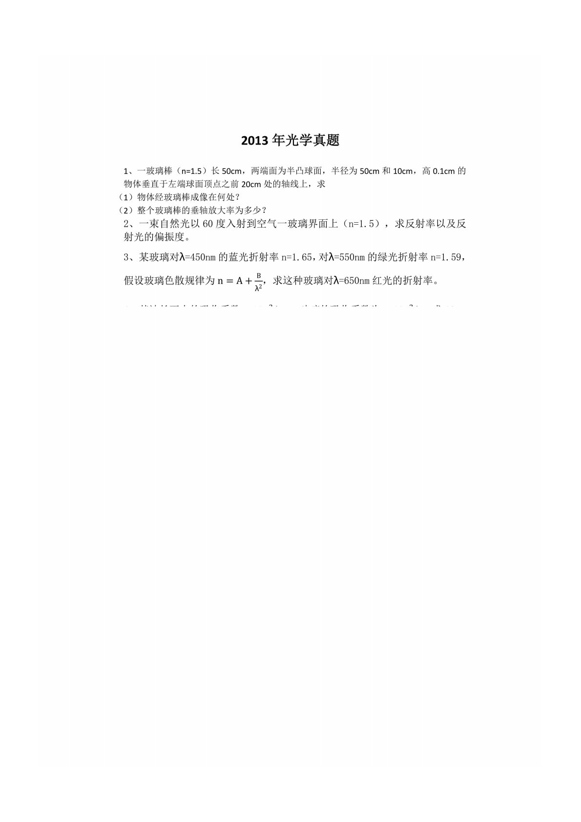 河北工业大学611光学2013年真题