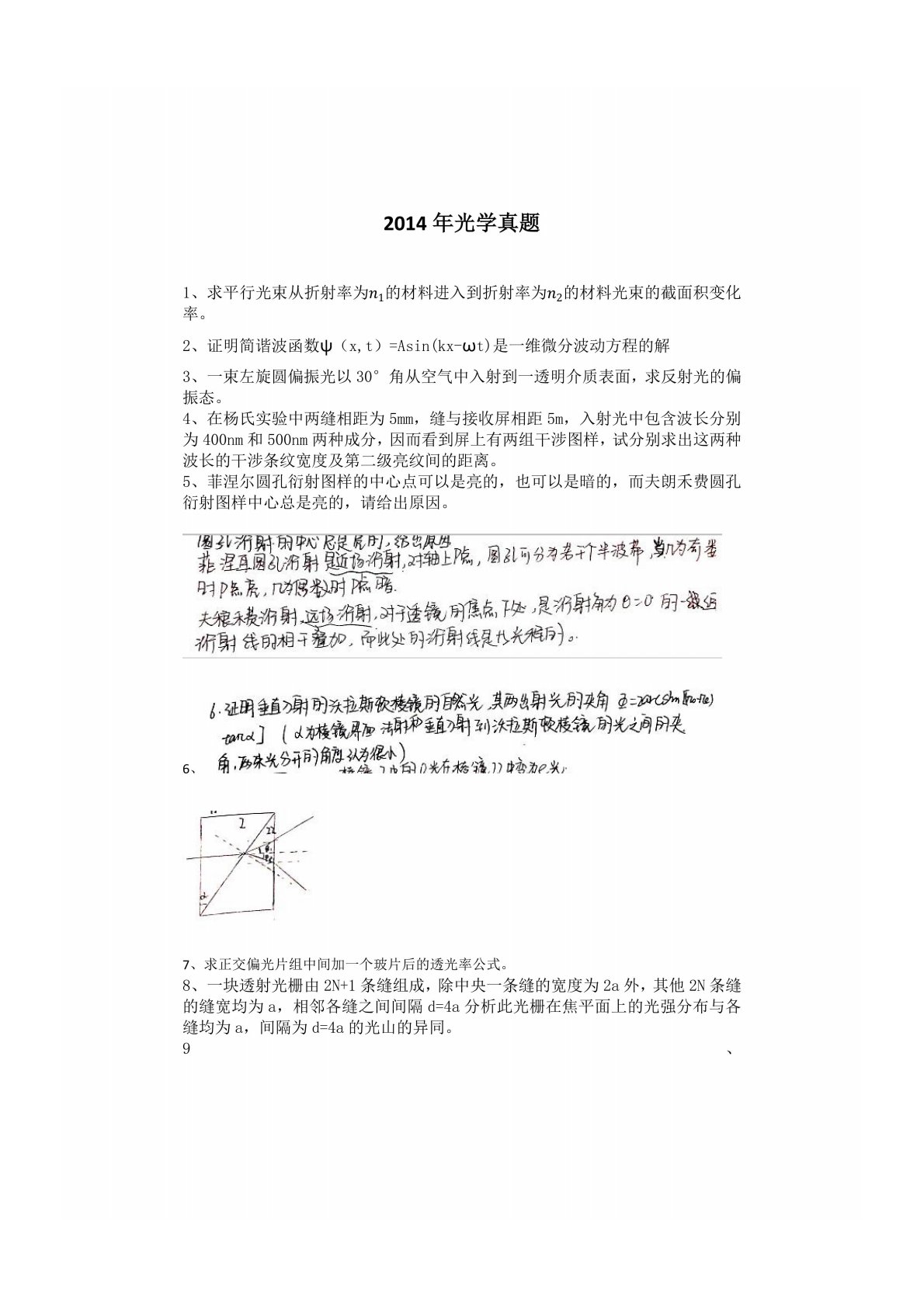 河北工业大学611光学2014年真题