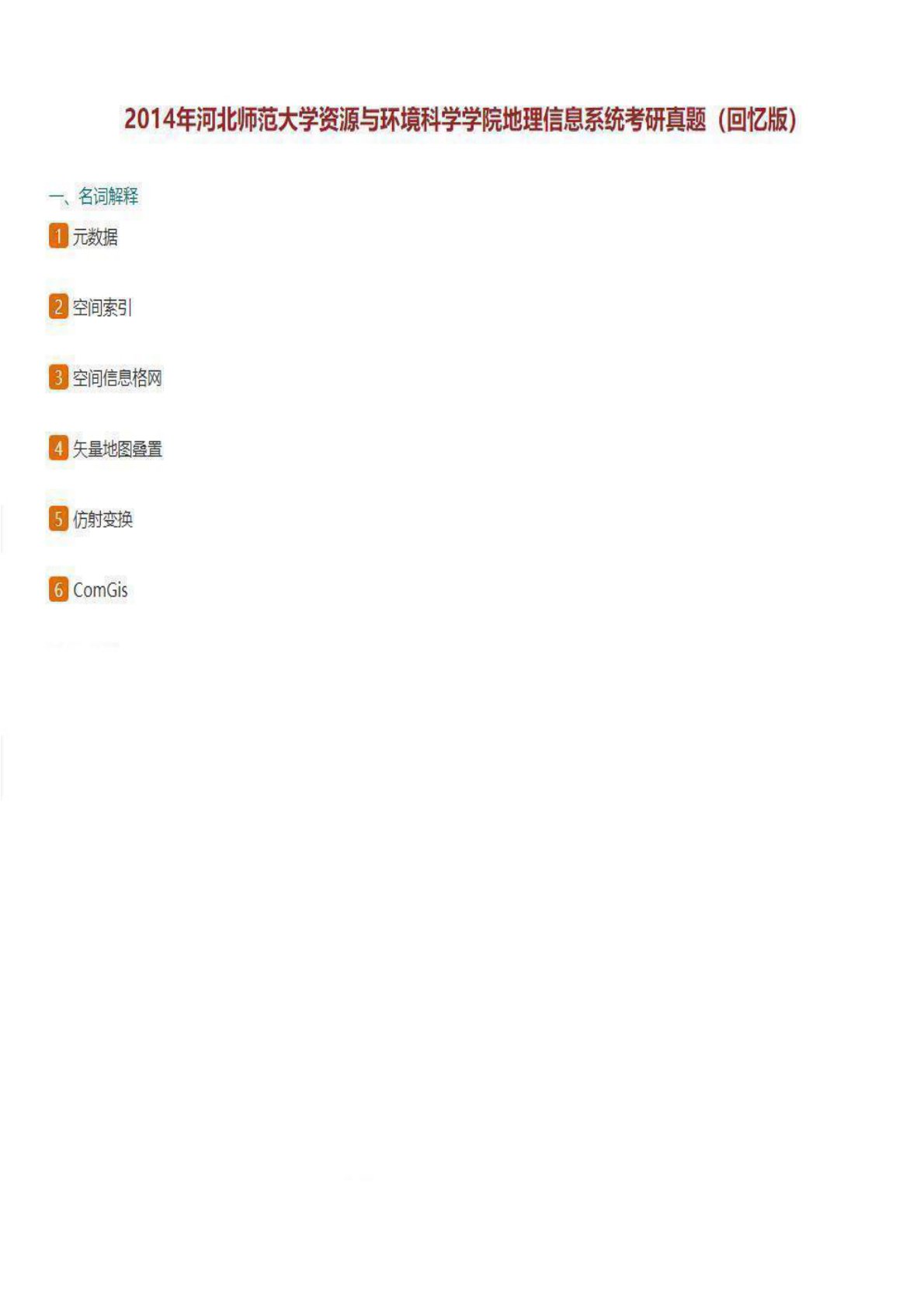 河北师范大学729地理信息科学2014年考试真题(回忆版)
