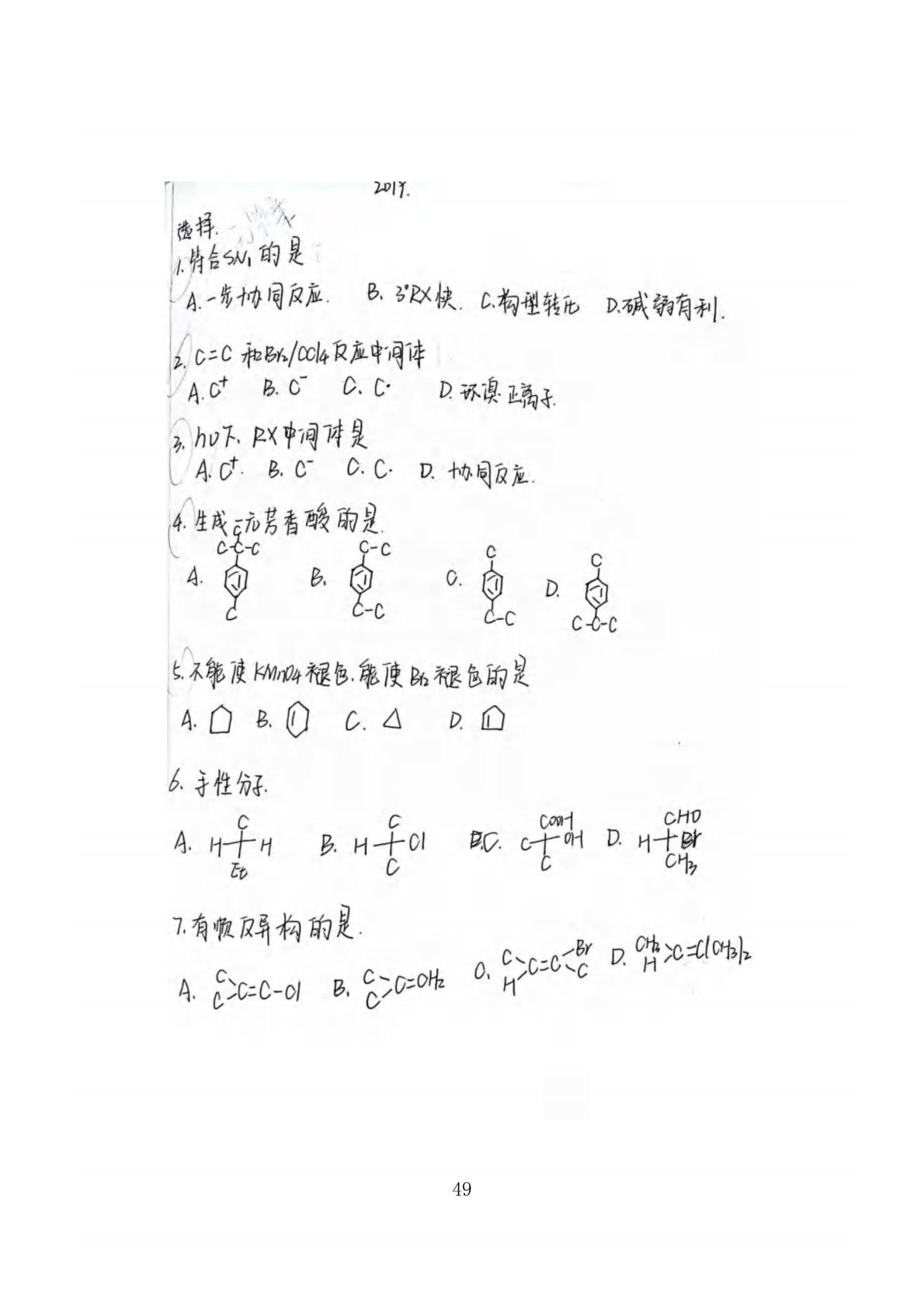 河南大学829有机化学2019年真题
