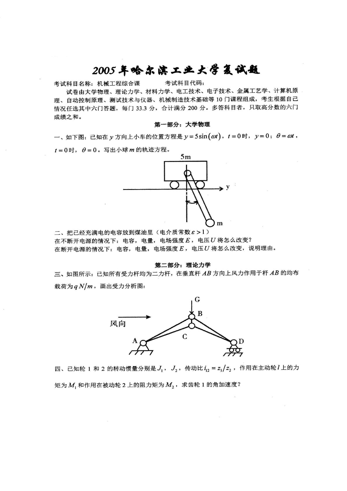哈尔滨工业大学机械工程综合课2005年复试真题